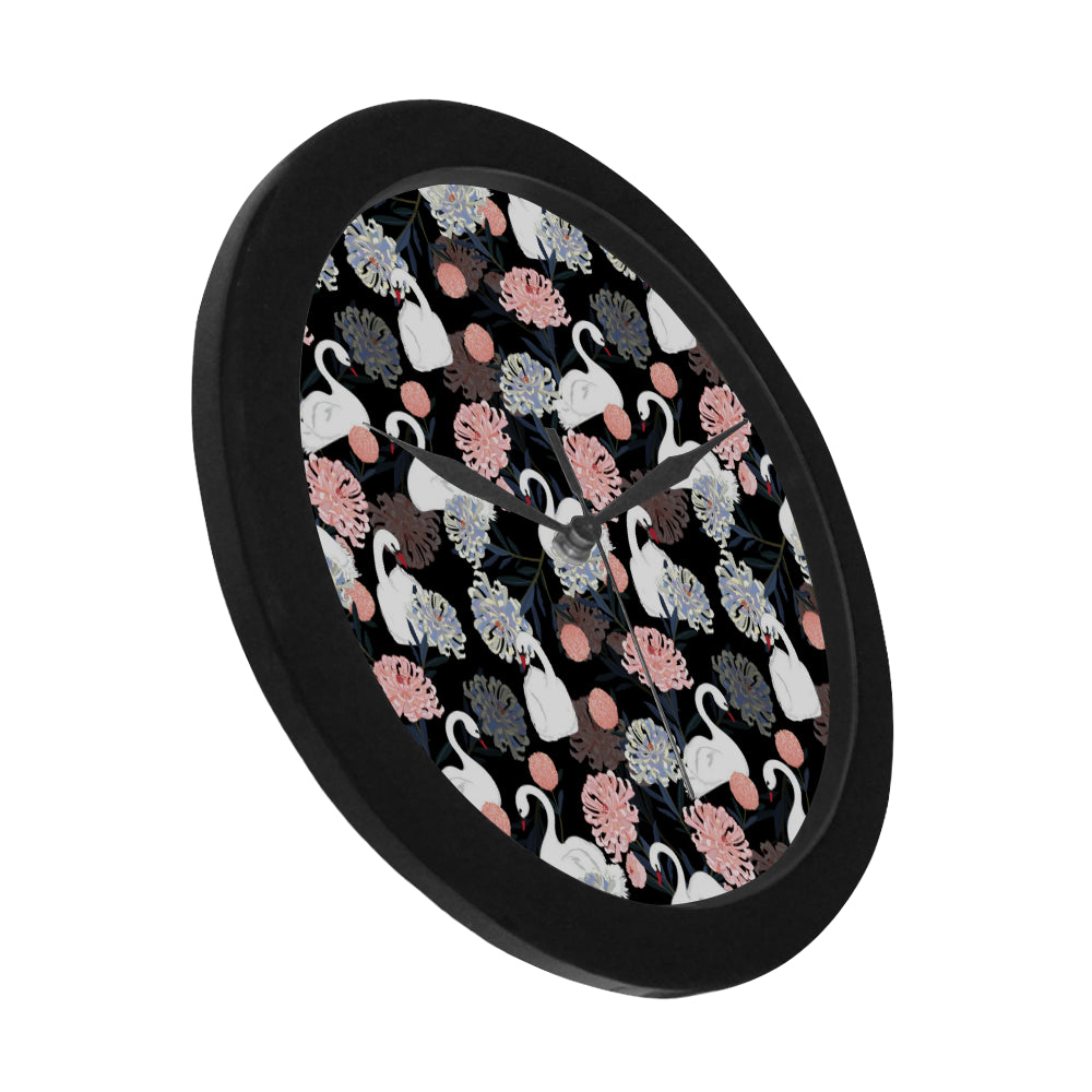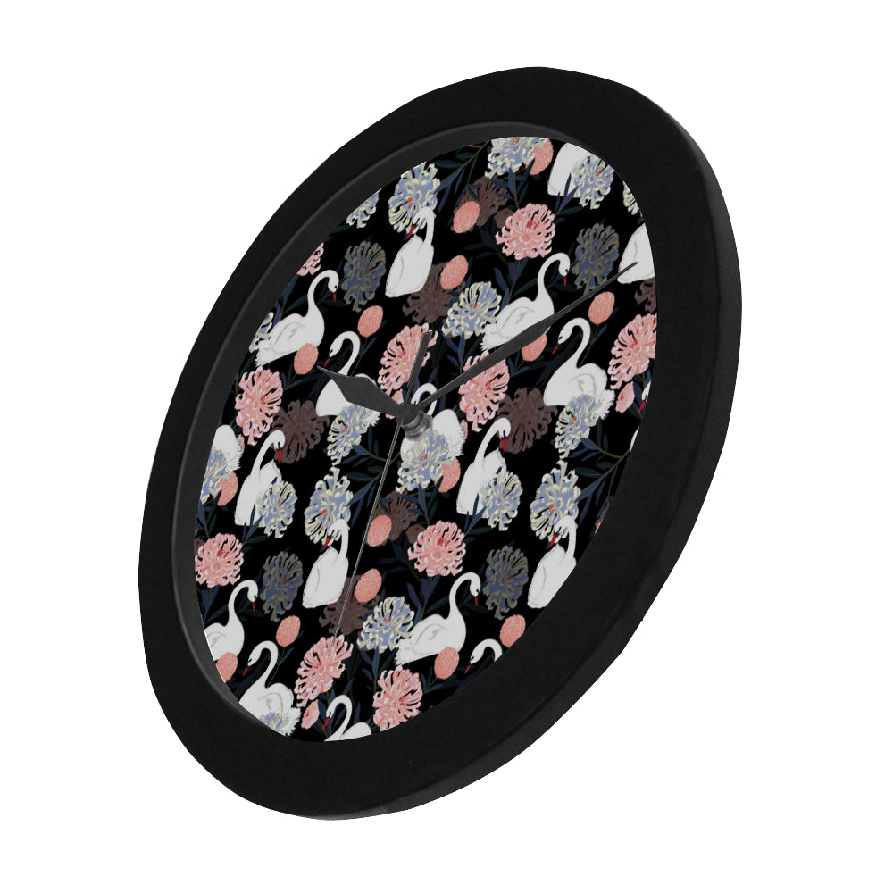 white swan blooming flower pattern Elegant Black Wall Clock is a uniqued design and limited item. It made to order, hand printed, and sewn with love in our factory.