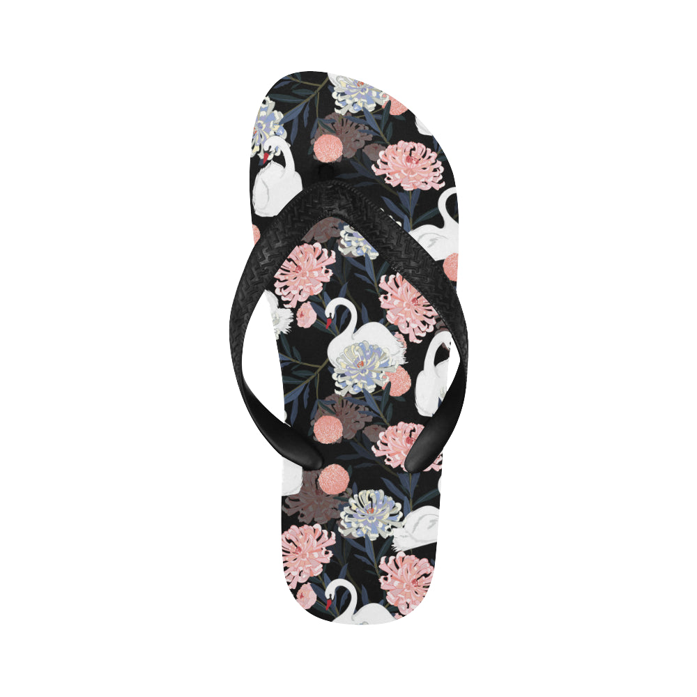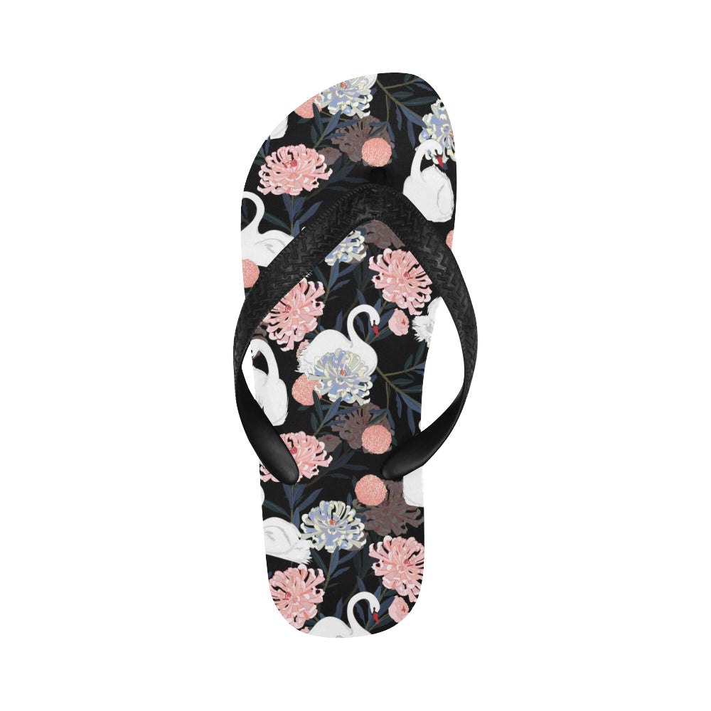 white swan blooming flower pattern Unisex Flip Flops is a uniqued design and limited item. It made to order, hand printed, and sewn with love in our factory.