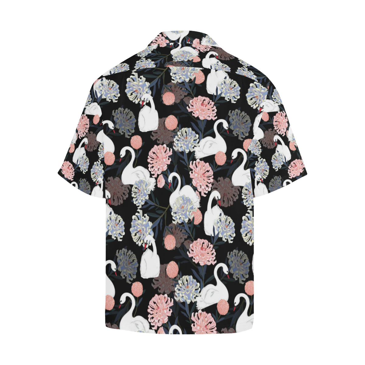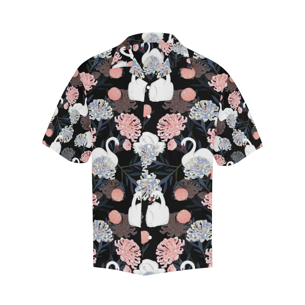 white swan blooming flower pattern Men's All Over Print Hawaiian Shirt is a uniqued design and limited item. It made to order, hand printed, and sewn with love in our factory.