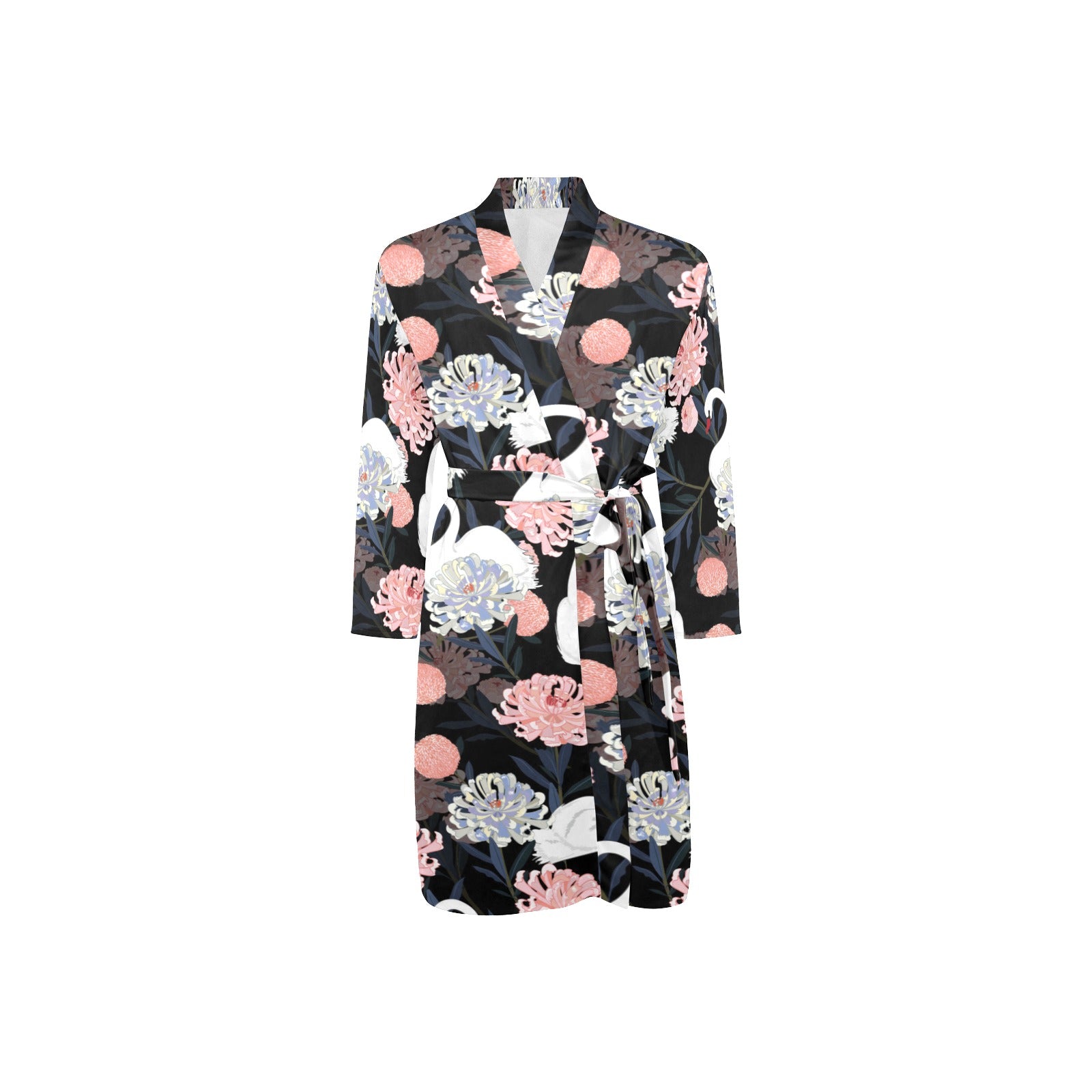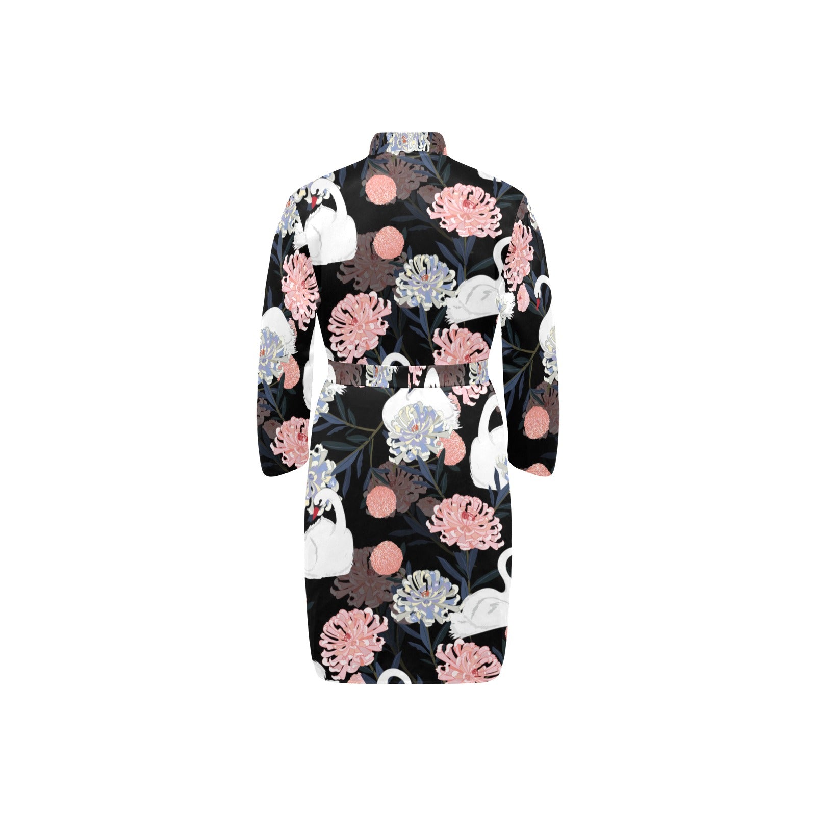 white swan blooming flower pattern Men's Long Sleeve Belted Night Robe