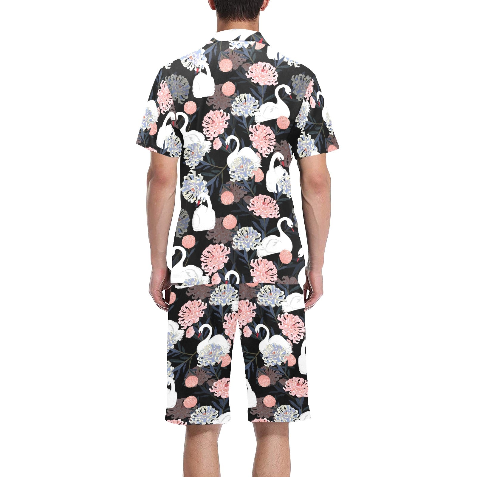 white swan blooming flower pattern Men's V-Neck Short Pajama Set