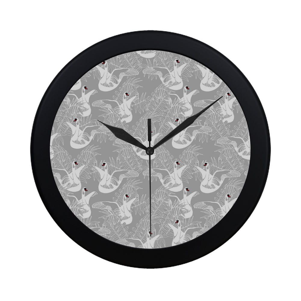 white swan gray background Elegant Black Wall Clock is a uniqued design and limited item. It made to order, hand printed, and sewn with love in our factory.