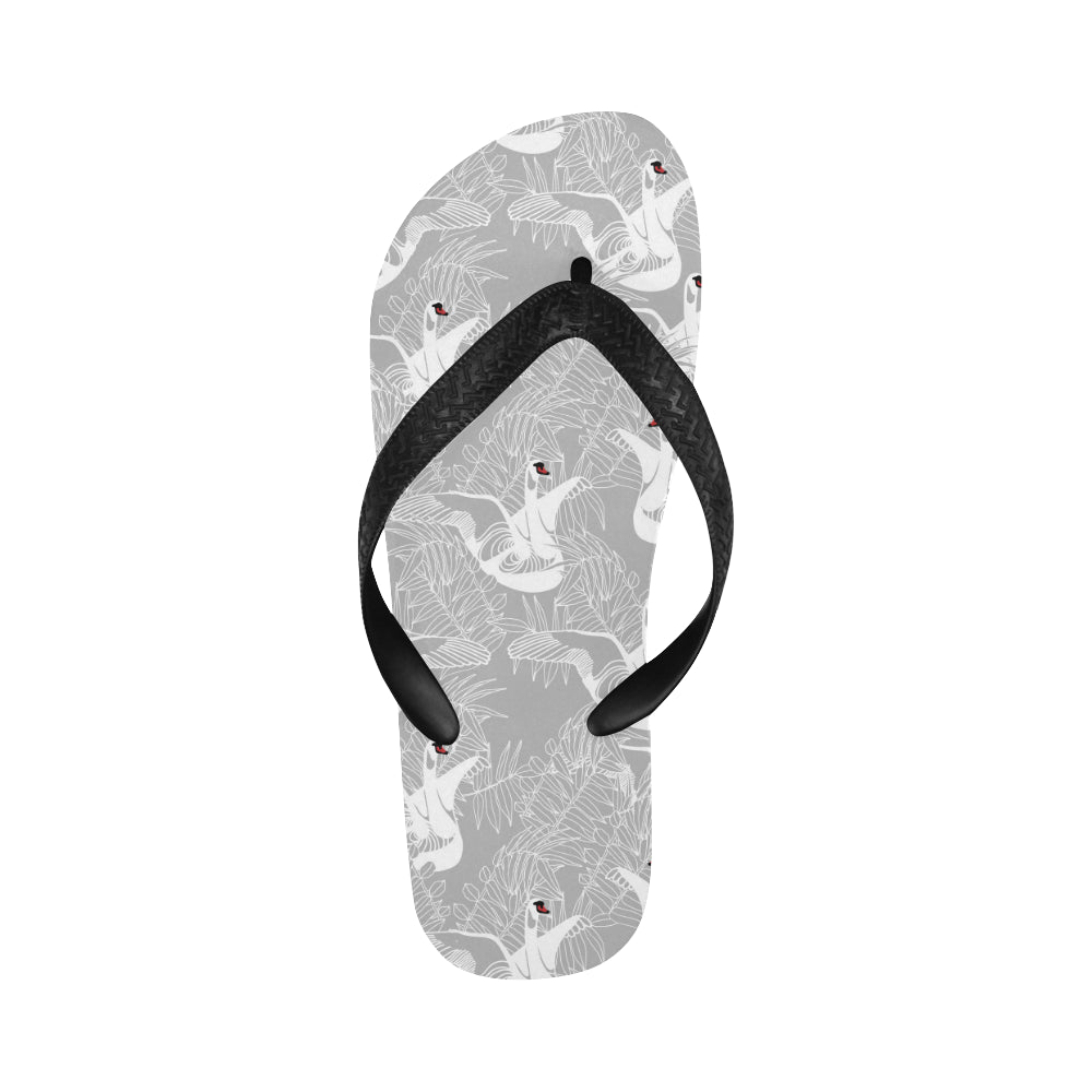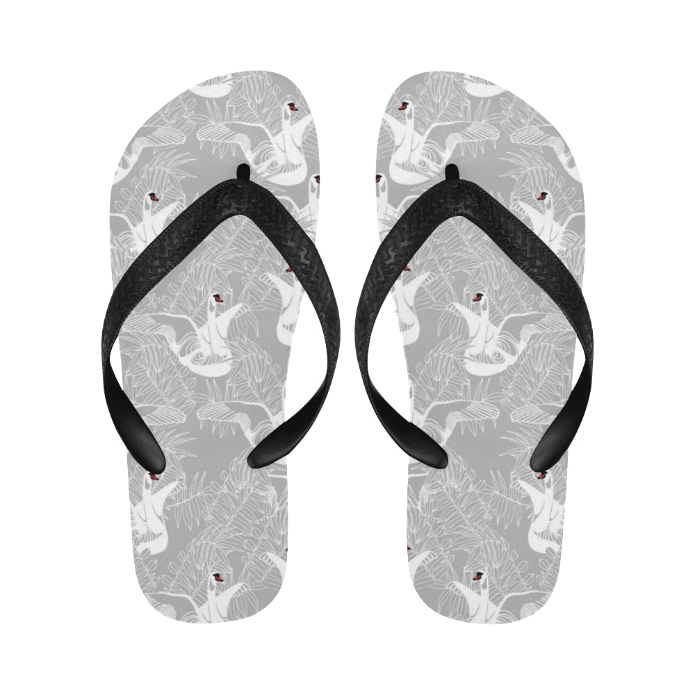 white swan gray background Unisex Flip Flops is a uniqued design and limited item. It made to order, hand printed, and sewn with love in our factory.