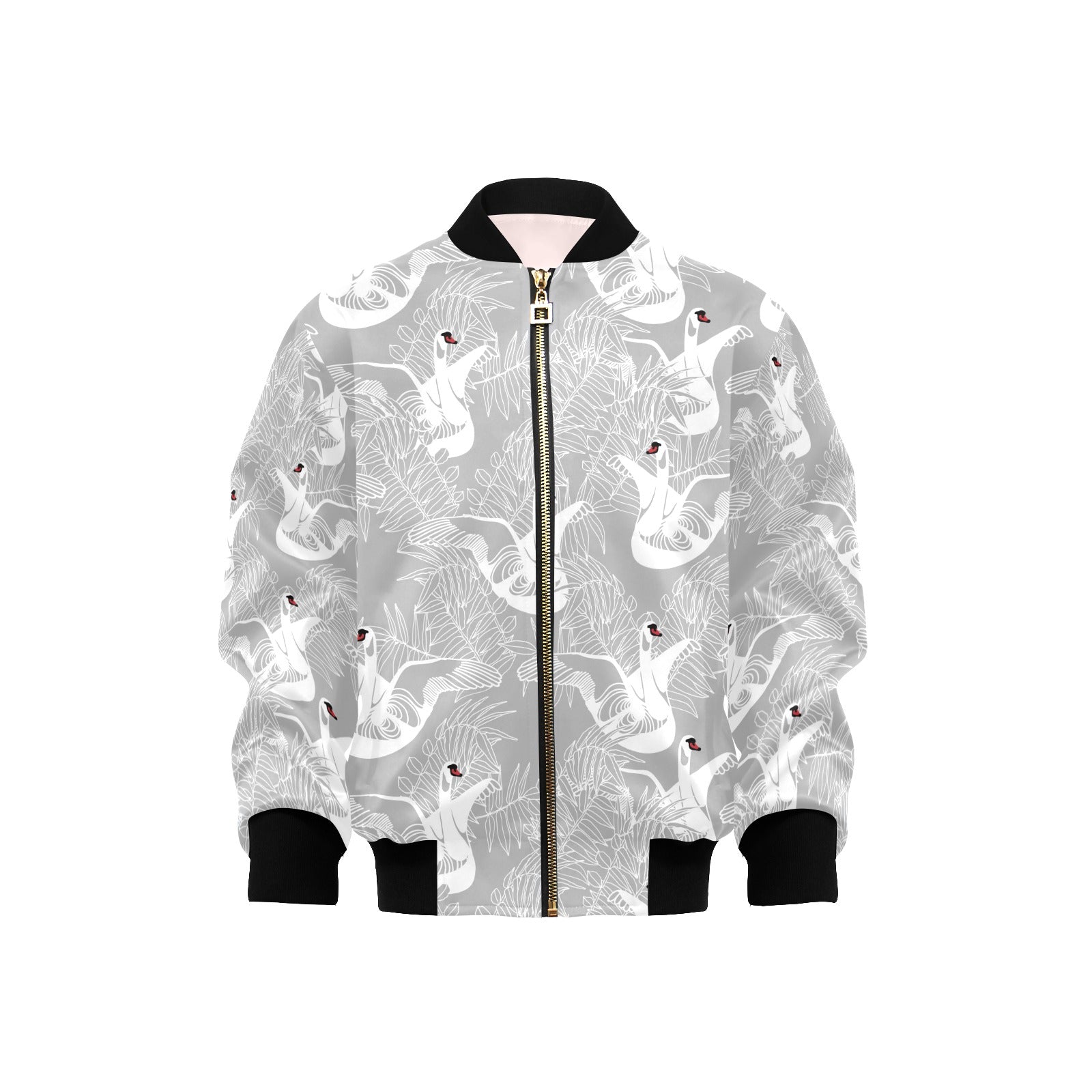 white swan gray background Kids' Boys' Girls' Bomber Jacket