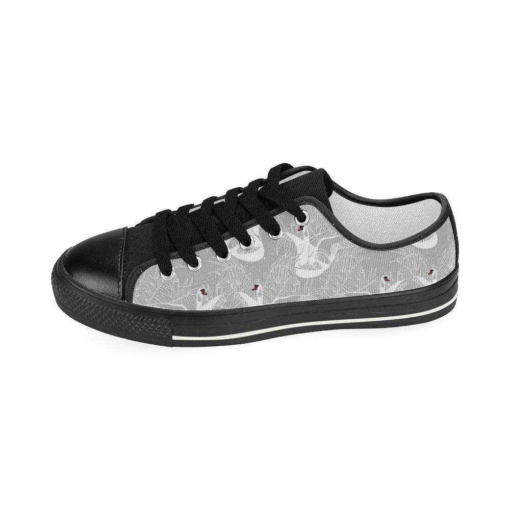 white swan gray background Kids' Boys' Girls' Low Top Canvas Shoes Black