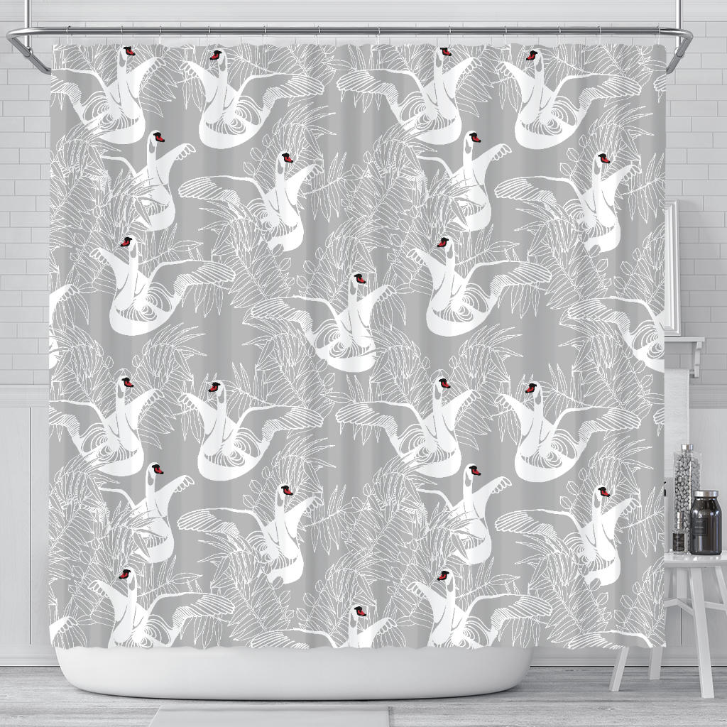 White Swan Gray Background Shower Curtain Fulfilled In US