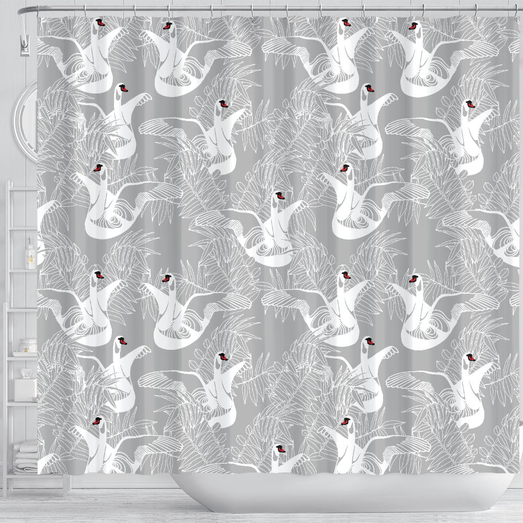 white swan gray background Shower Curtain is a uniqued design and limited item. It made to order, hand printed, and sewn with love in our factory.