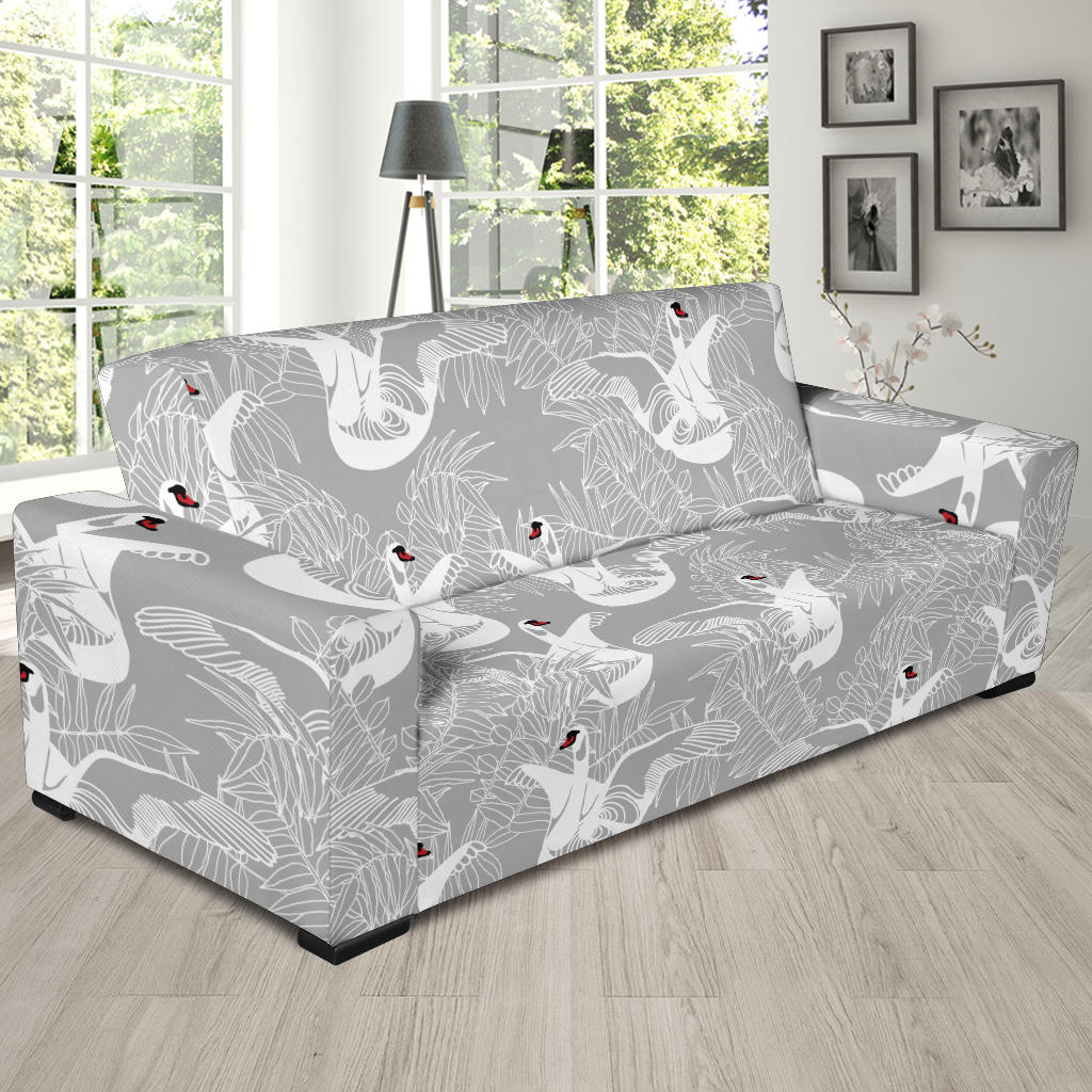 white swan gray background Sofa Slipcover is a uniqued design and limited item. It made to order, hand printed, and sewn with love in our factory.
