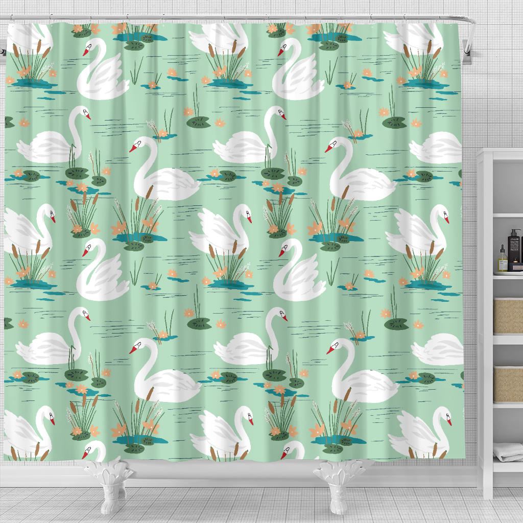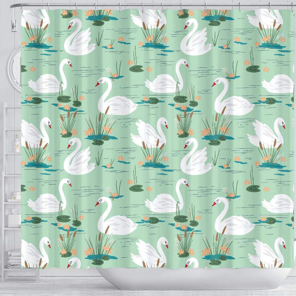 White Swan Lake Pattern Shower Curtain Fulfilled In US