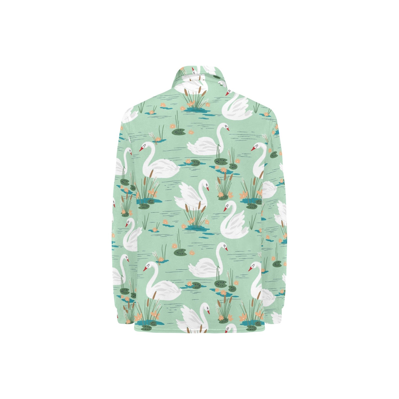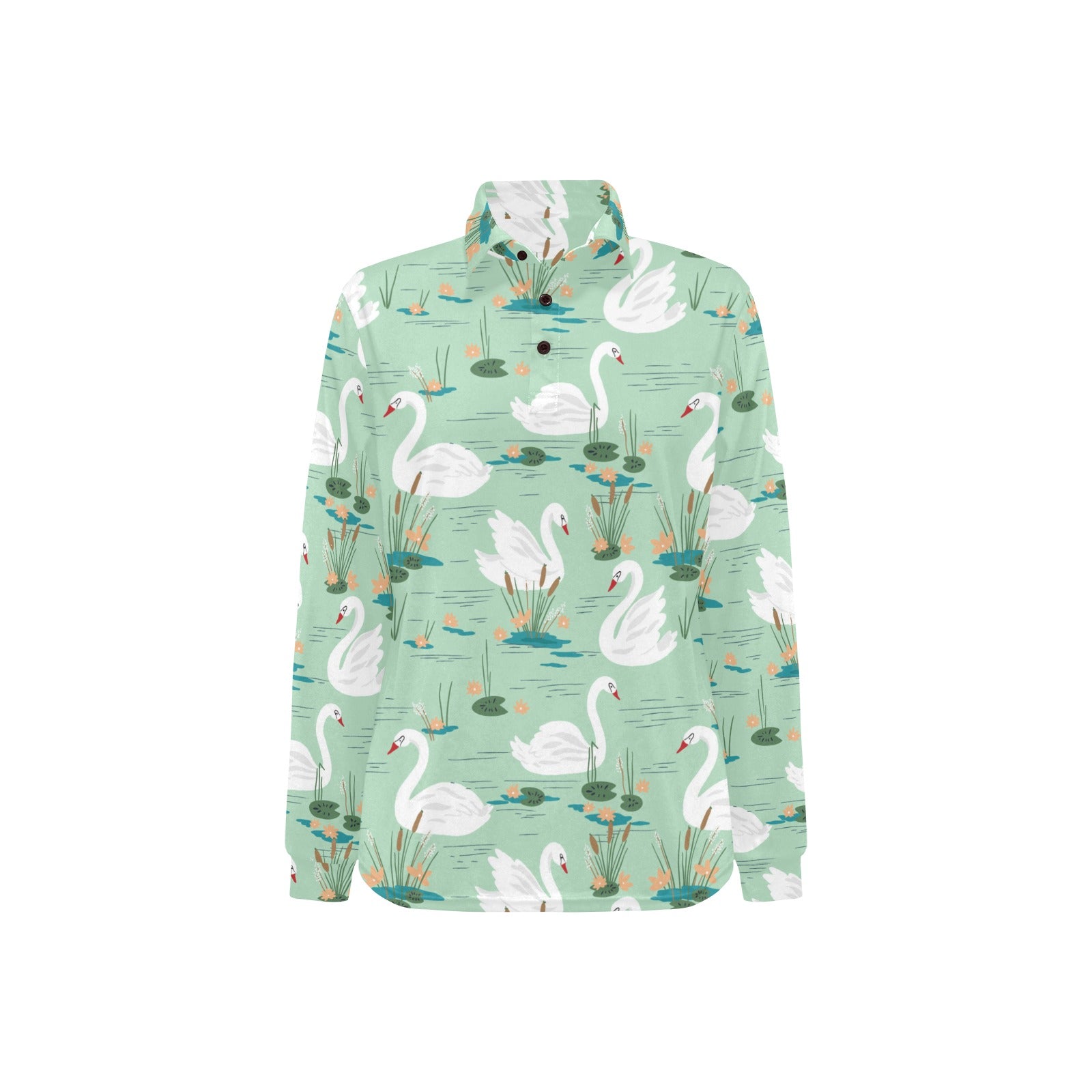 White swan lake pattern Women's Long Sleeve Polo Shirt