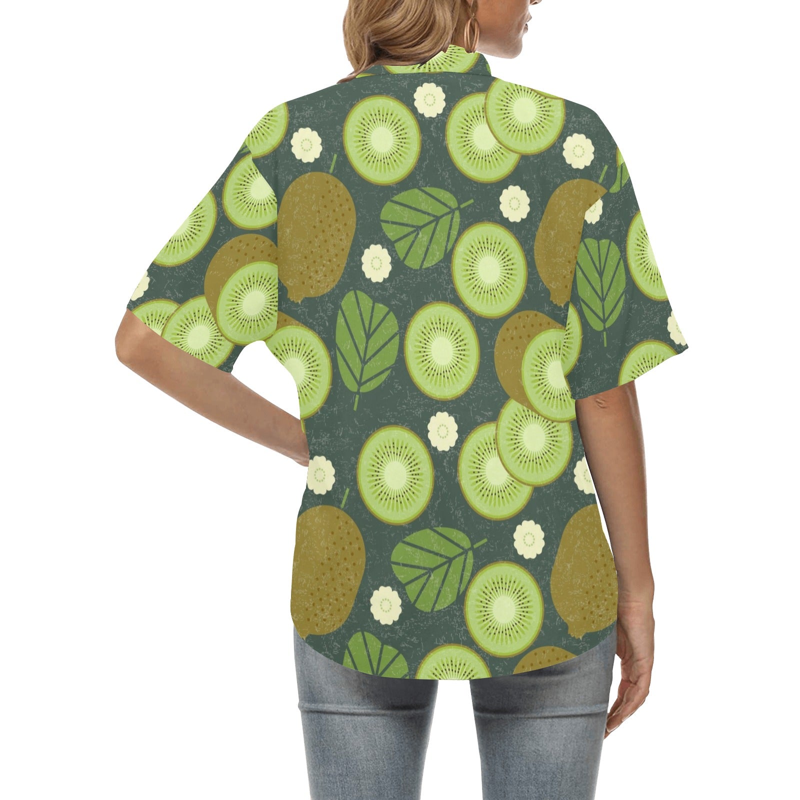 Whole sliced kiwi leave and flower Women's All Over Print Hawaiian Shirt