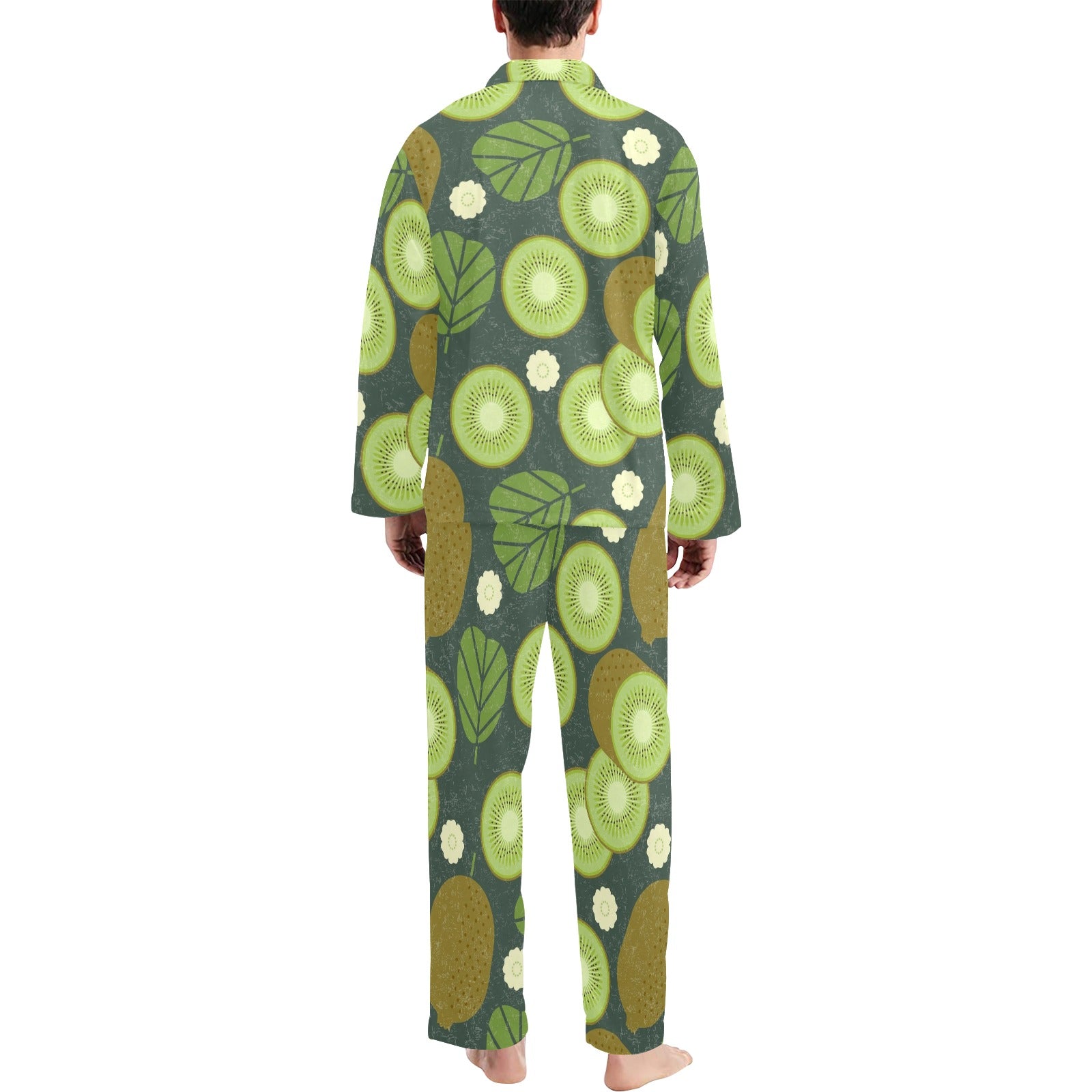 Whole sliced kiwi leave and flower Men's Long Pajama Set