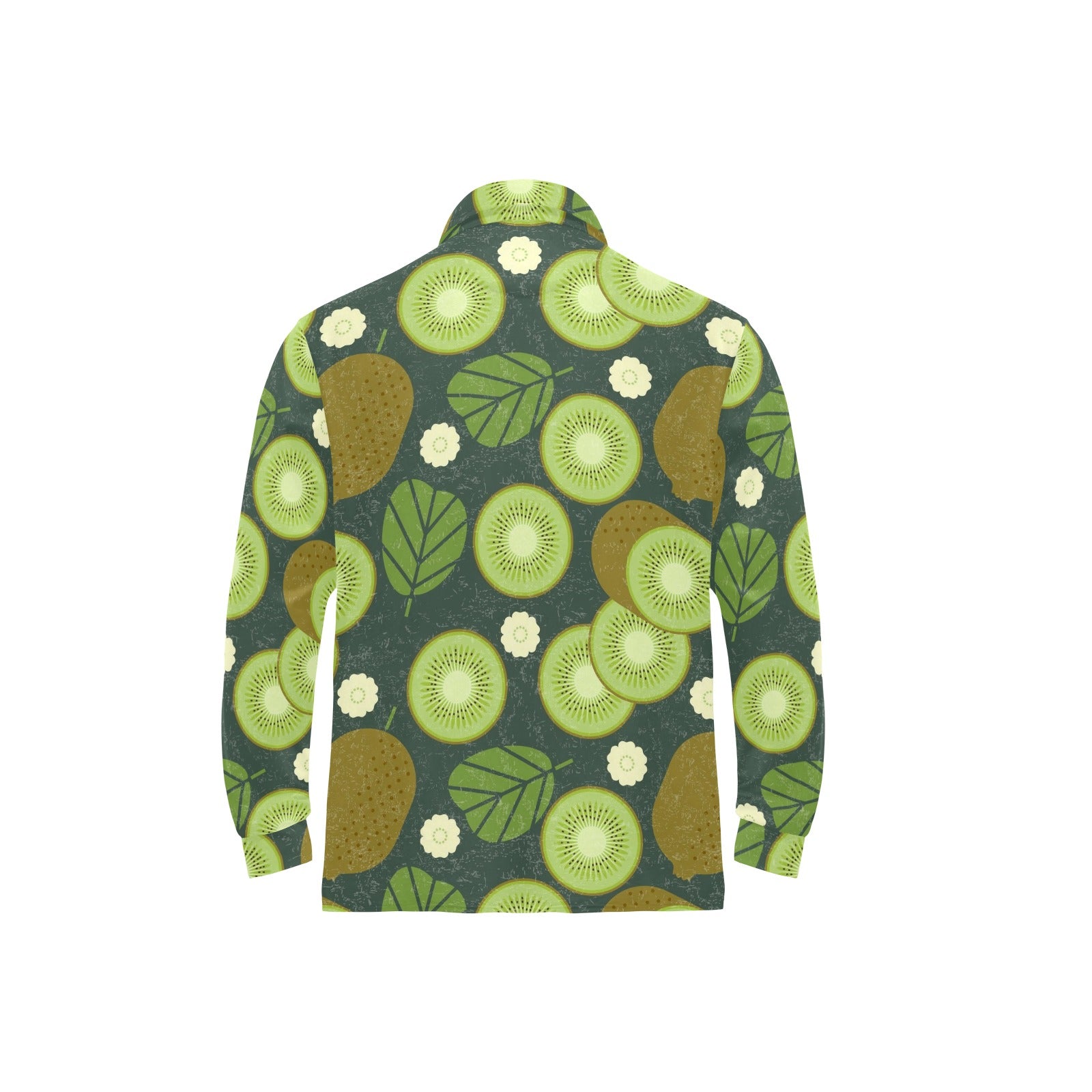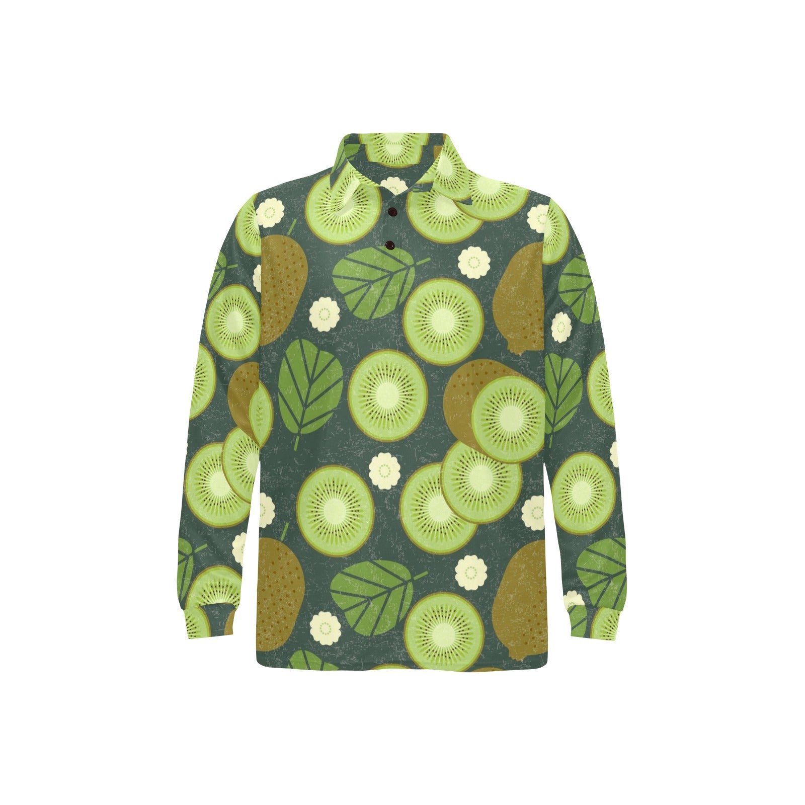 Whole sliced kiwi leave and flower Men's Long Sleeve Polo Shirt