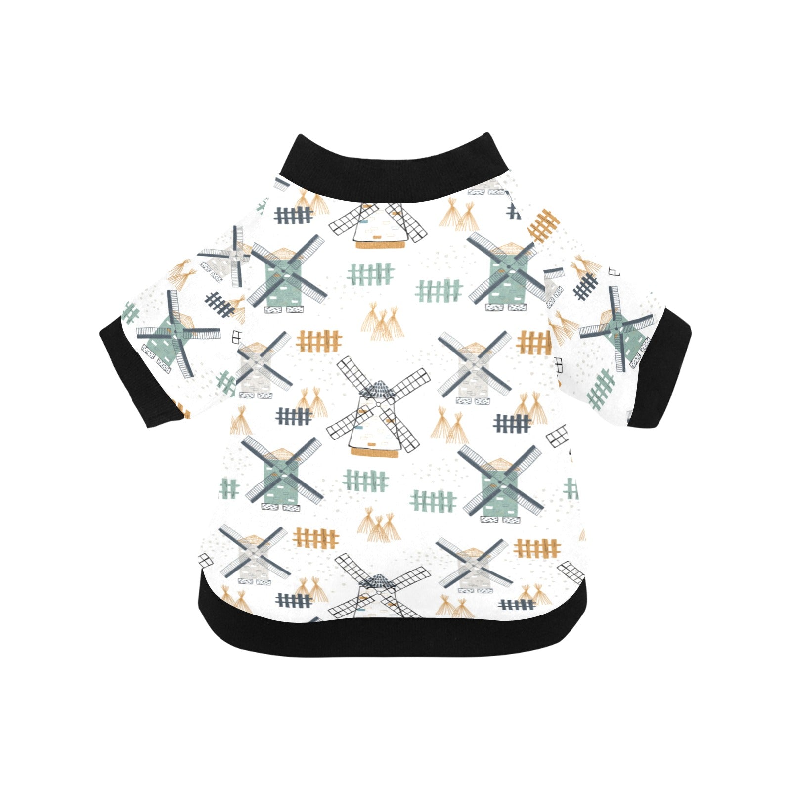 windmill pattern All Over Print Pet Dog Round Neck Fuzzy Shirt