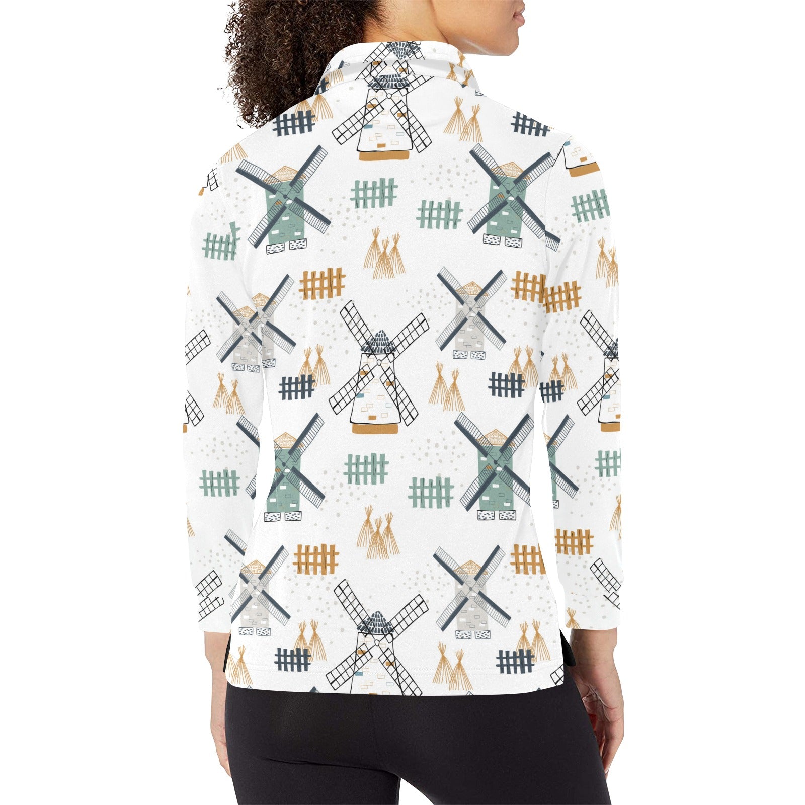 - Long-sleeve polo shirt with point collar, two side slits, leisure and classic design for women.