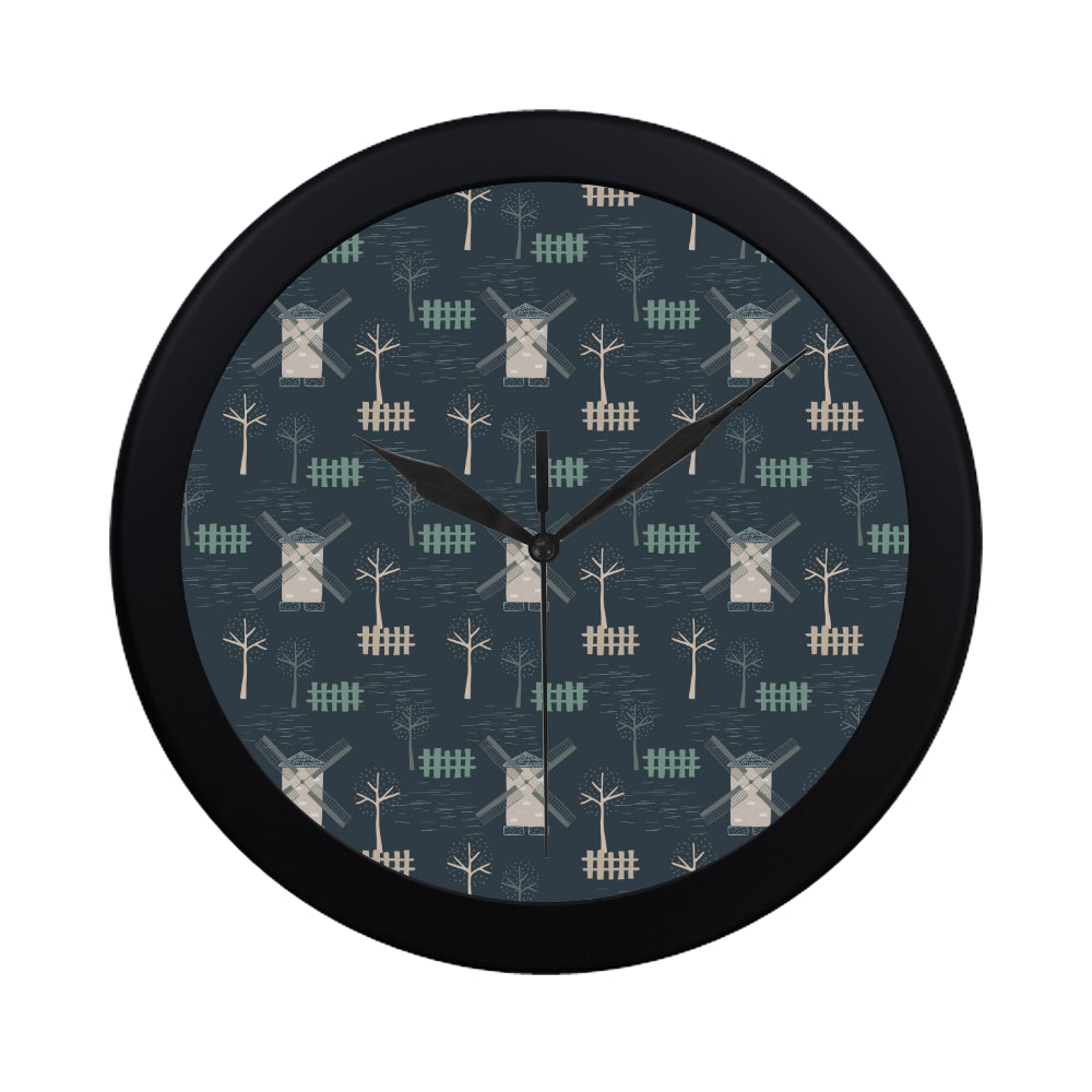 windmill tree pattern Elegant Black Wall Clock is a uniqued design and limited item. It made to order, hand printed, and sewn with love in our factory.