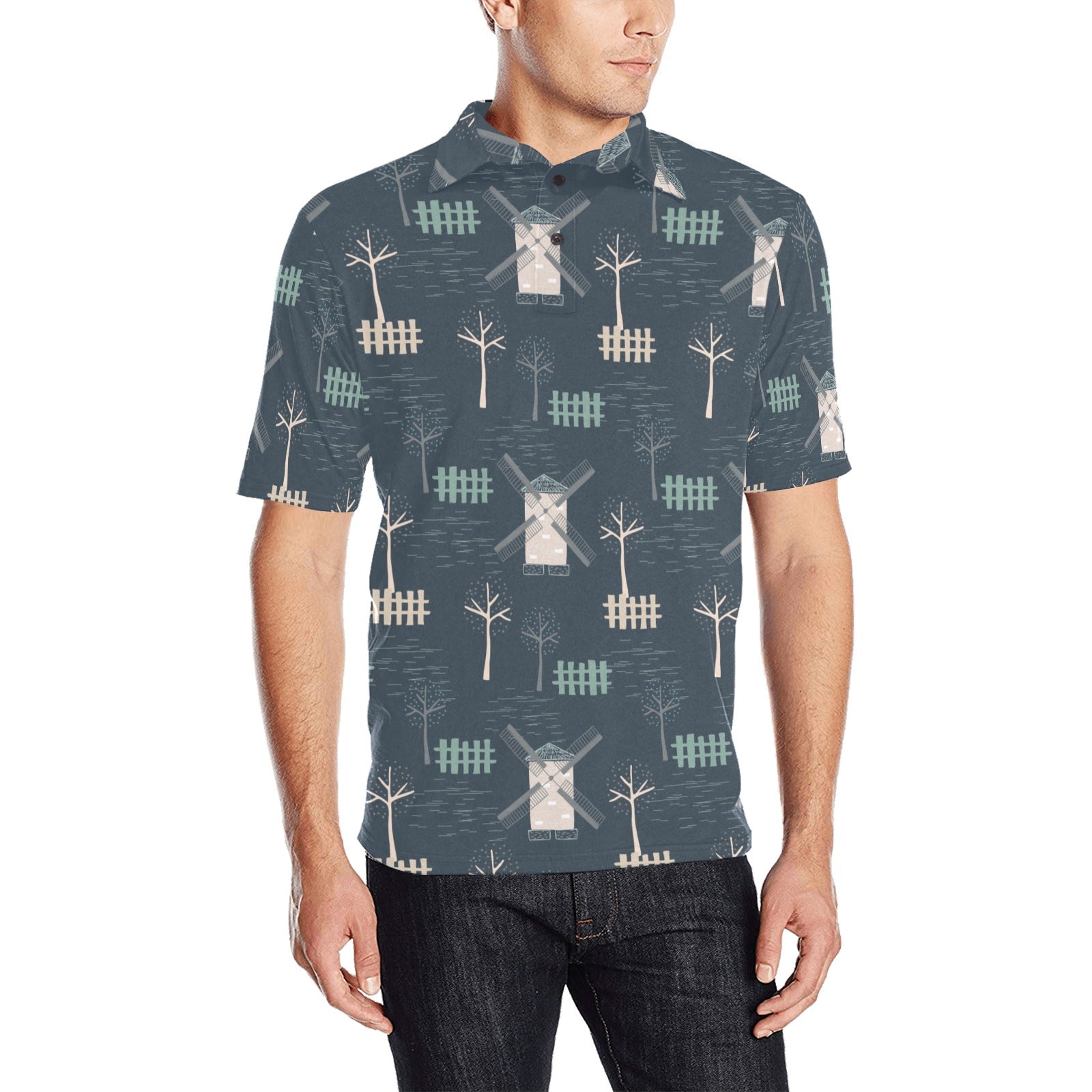 windmill tree pattern Men's All Over Print Polo Shirt