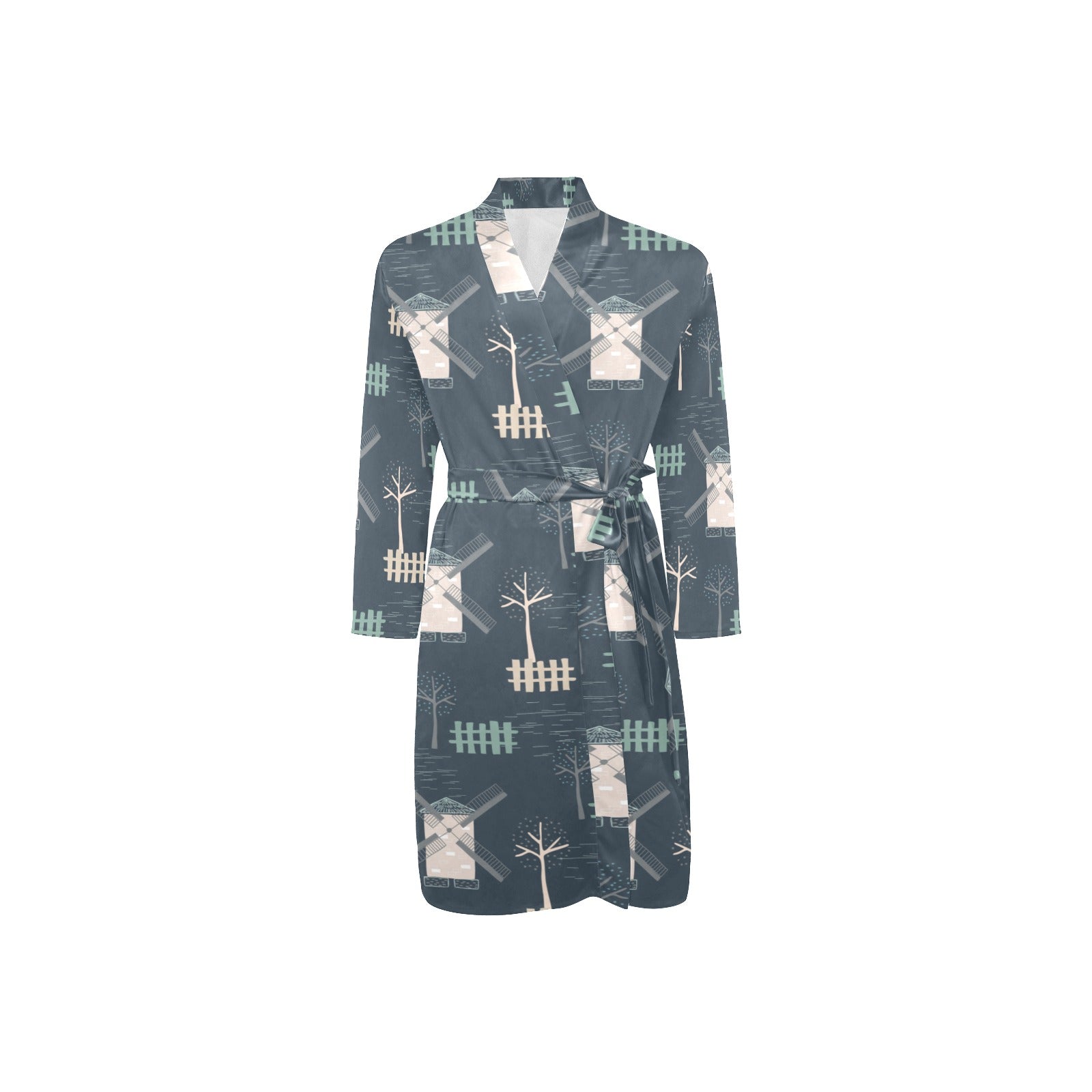 windmill tree pattern Men's Long Sleeve Belted Night Robe