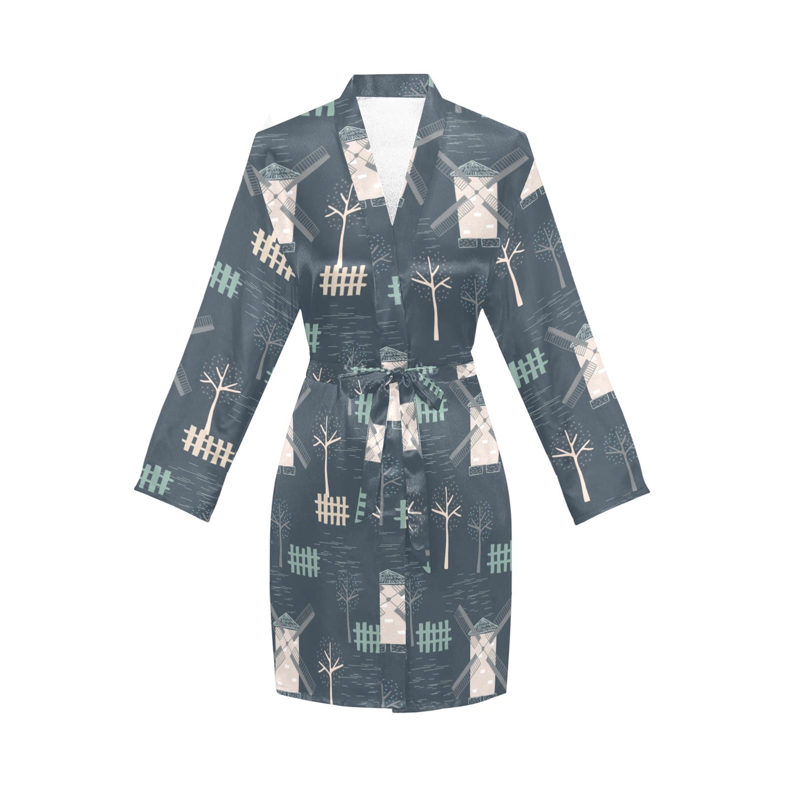 windmill tree pattern Women's Long Sleeve Belted Night Robe
