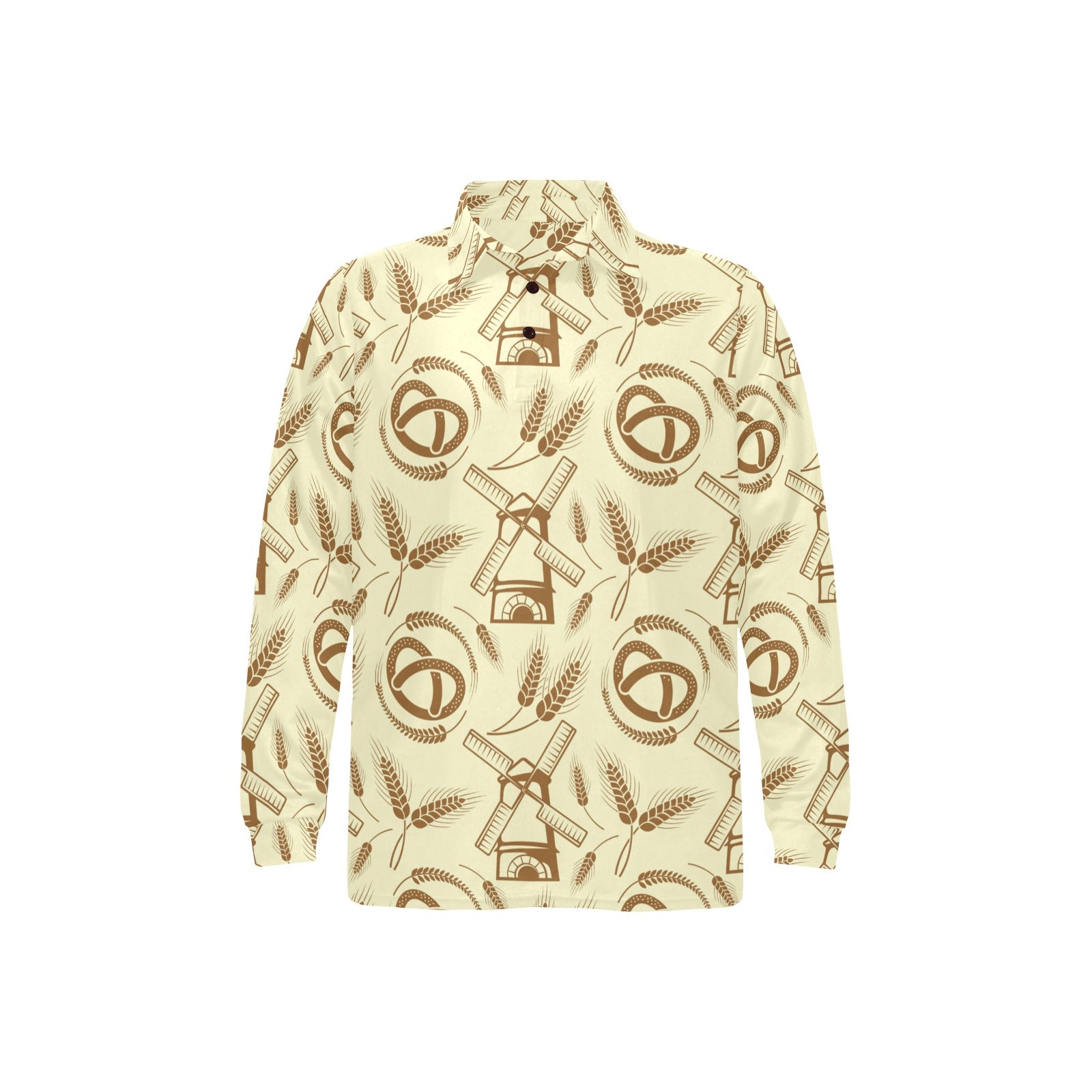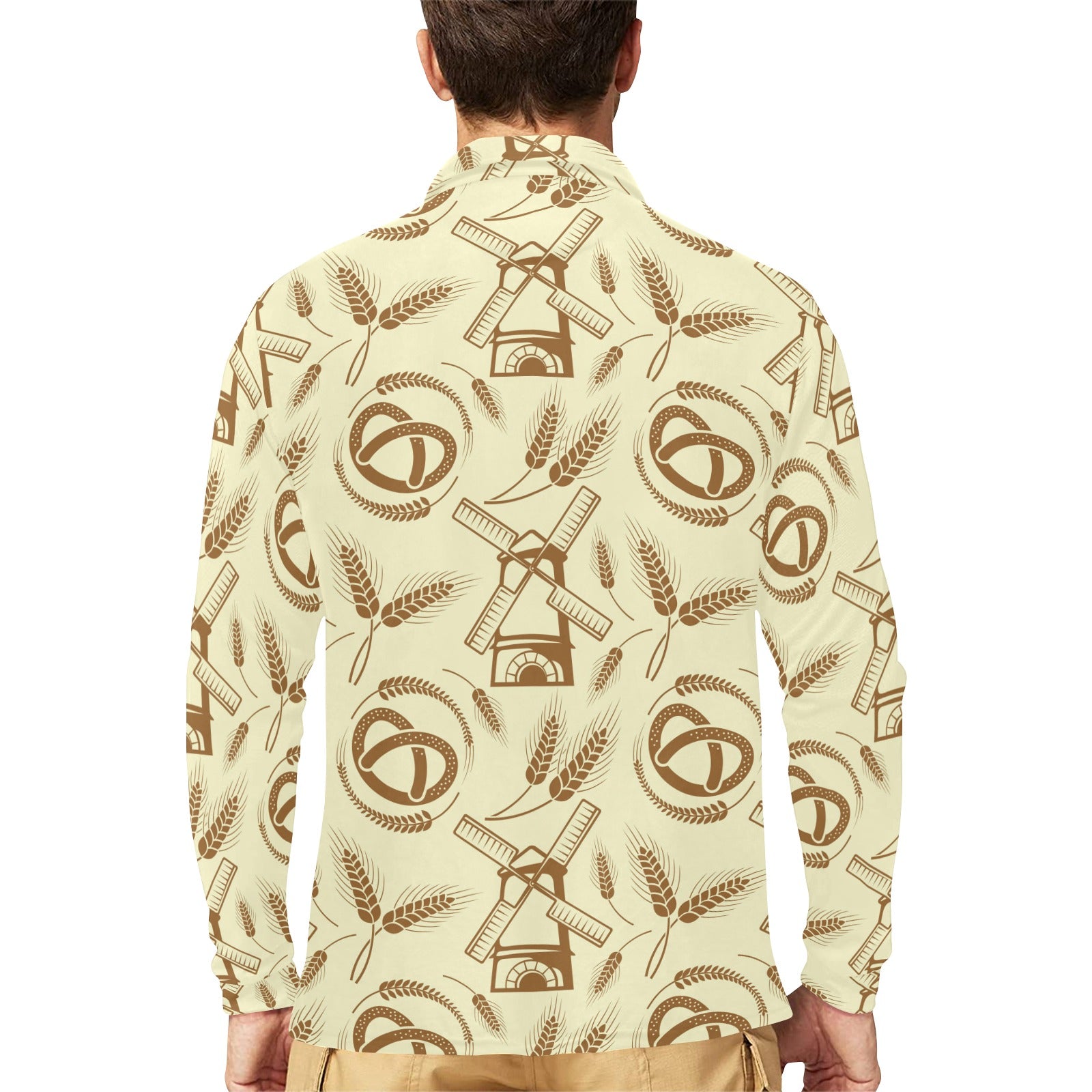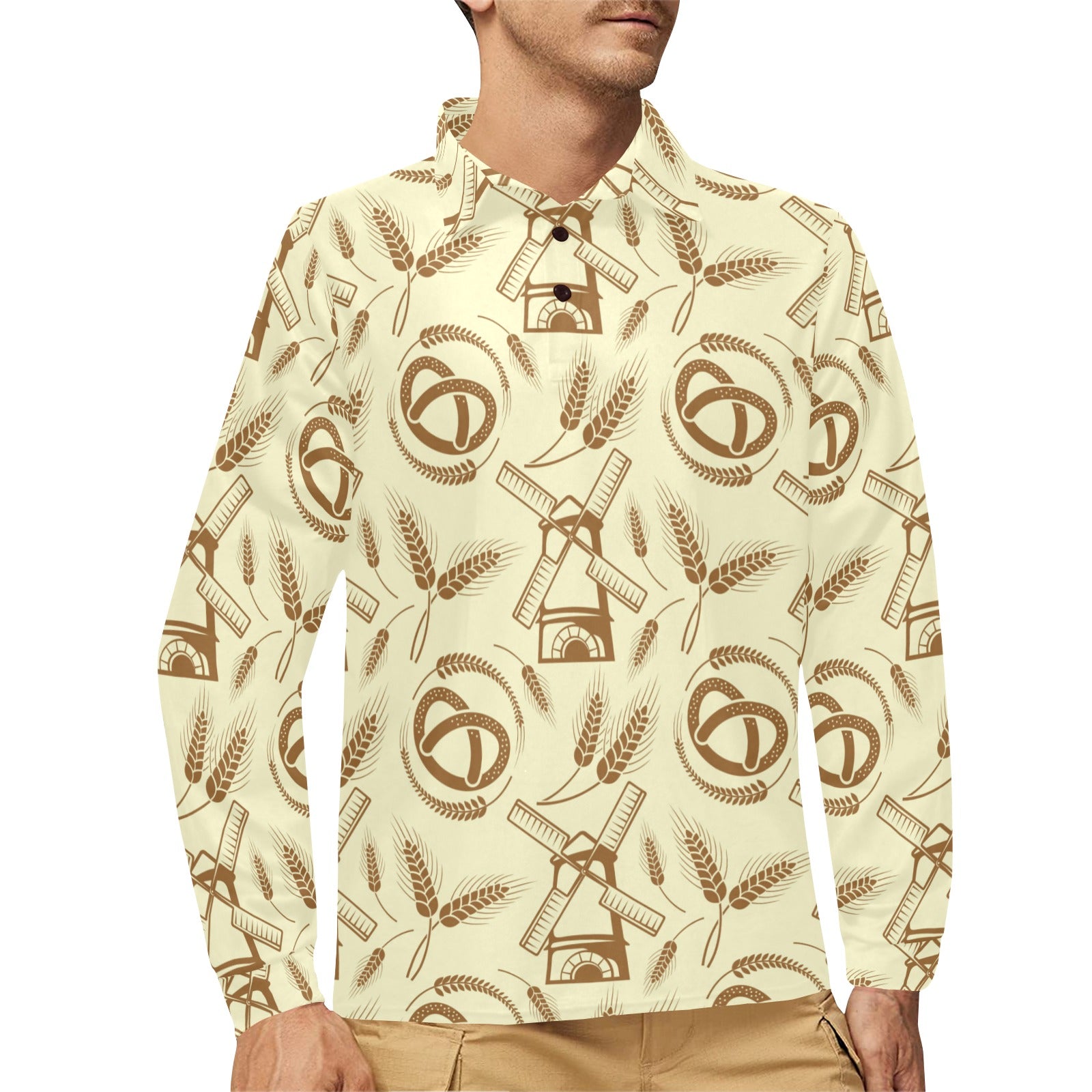 Windmill Wheat pattern Men's Long Sleeve Polo Shirt