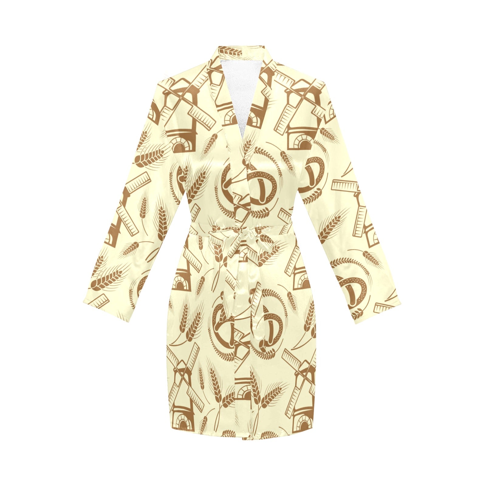 Windmill Wheat pattern Women's Long Sleeve Belted Night Robe
