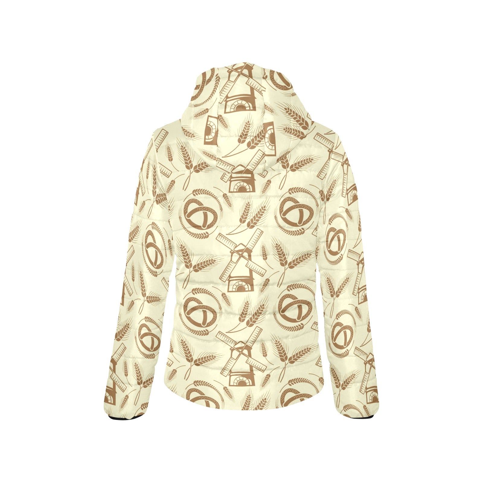 Windmill Wheat pattern Women's Padded Hooded Jacket