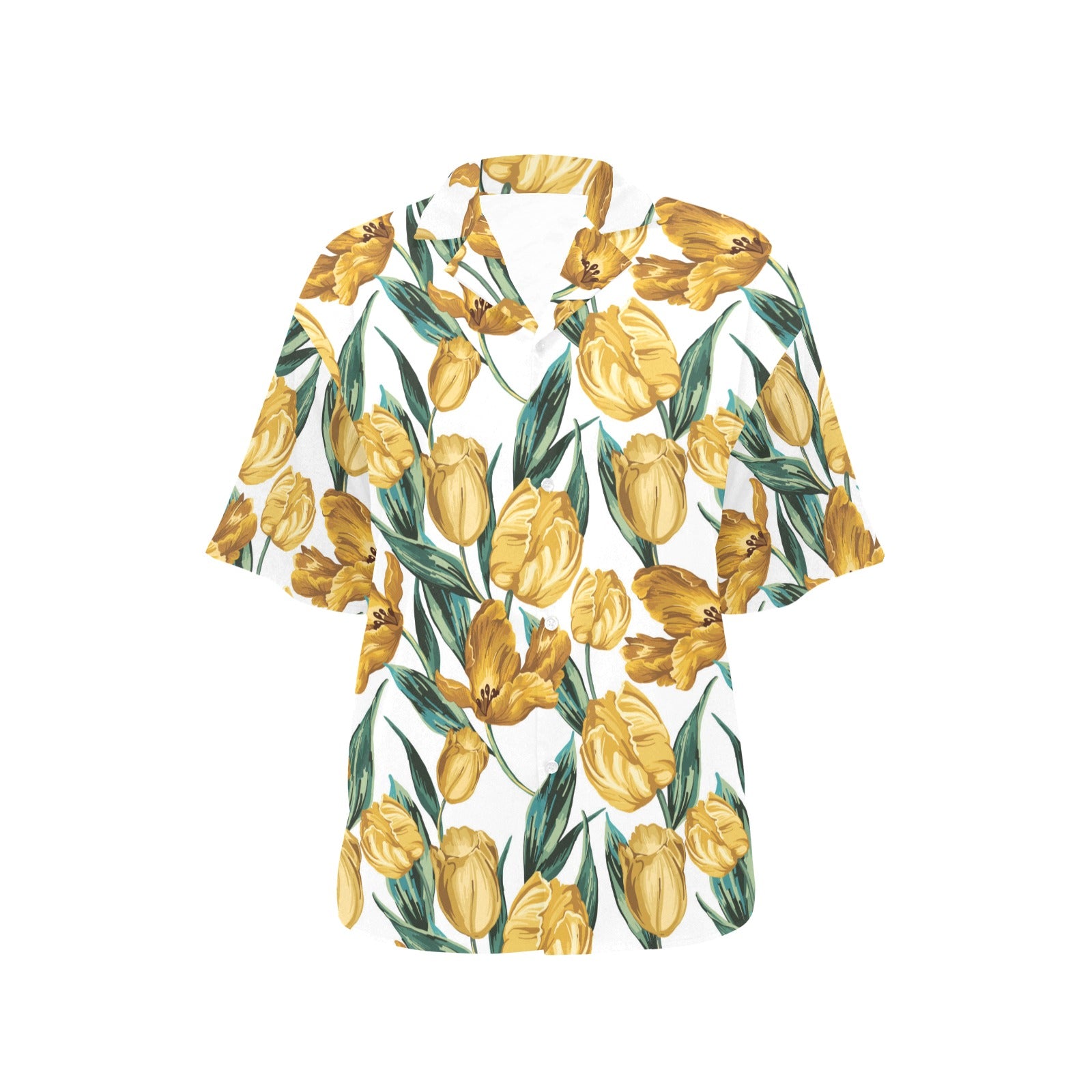yellow tulips pattern Women's All Over Print Hawaiian Shirt