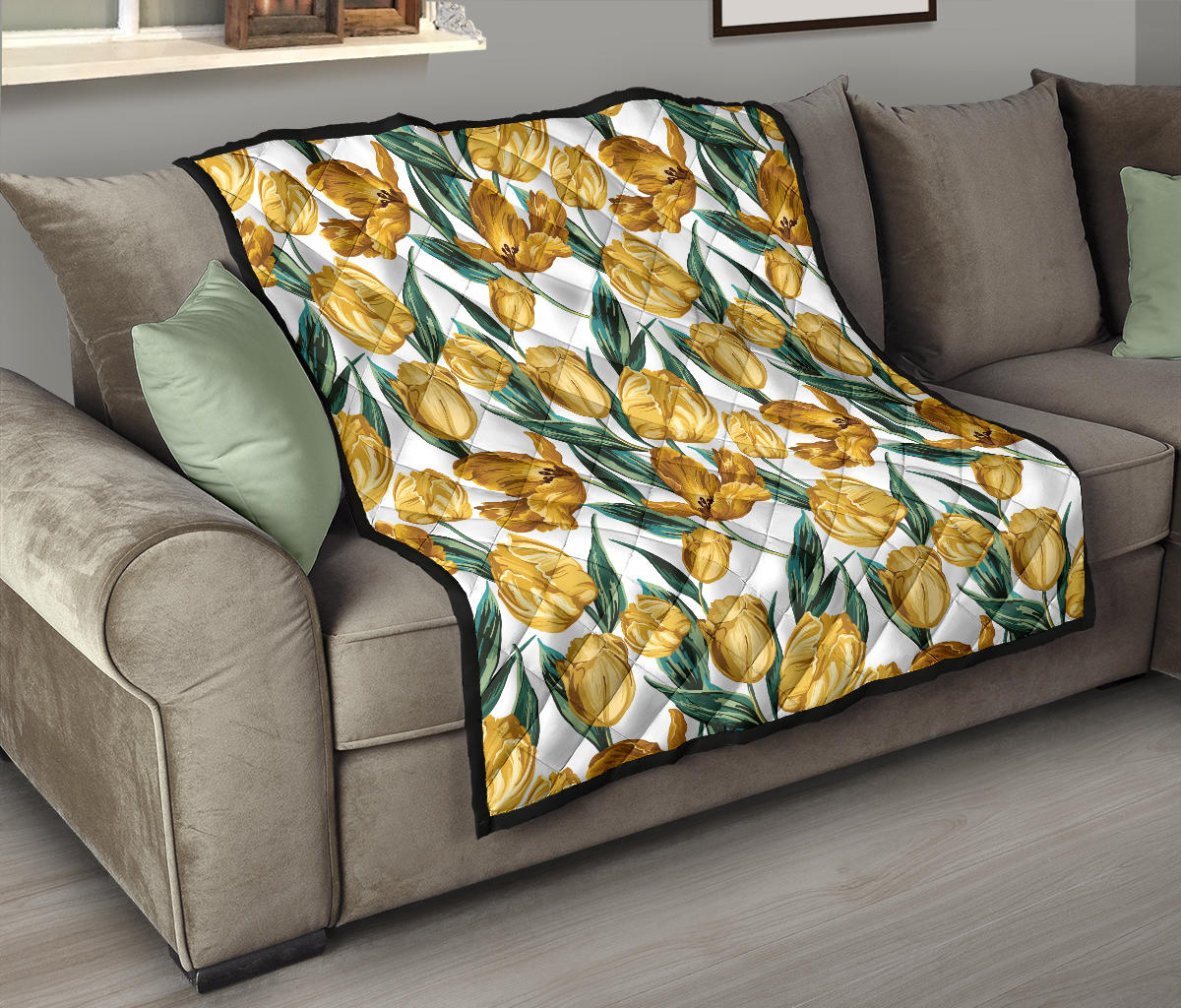 Yellow Tulips Pattern Premium Quilt is a uniqued design and limited item. It made to order, hand printed, and sewn with love in our factory.