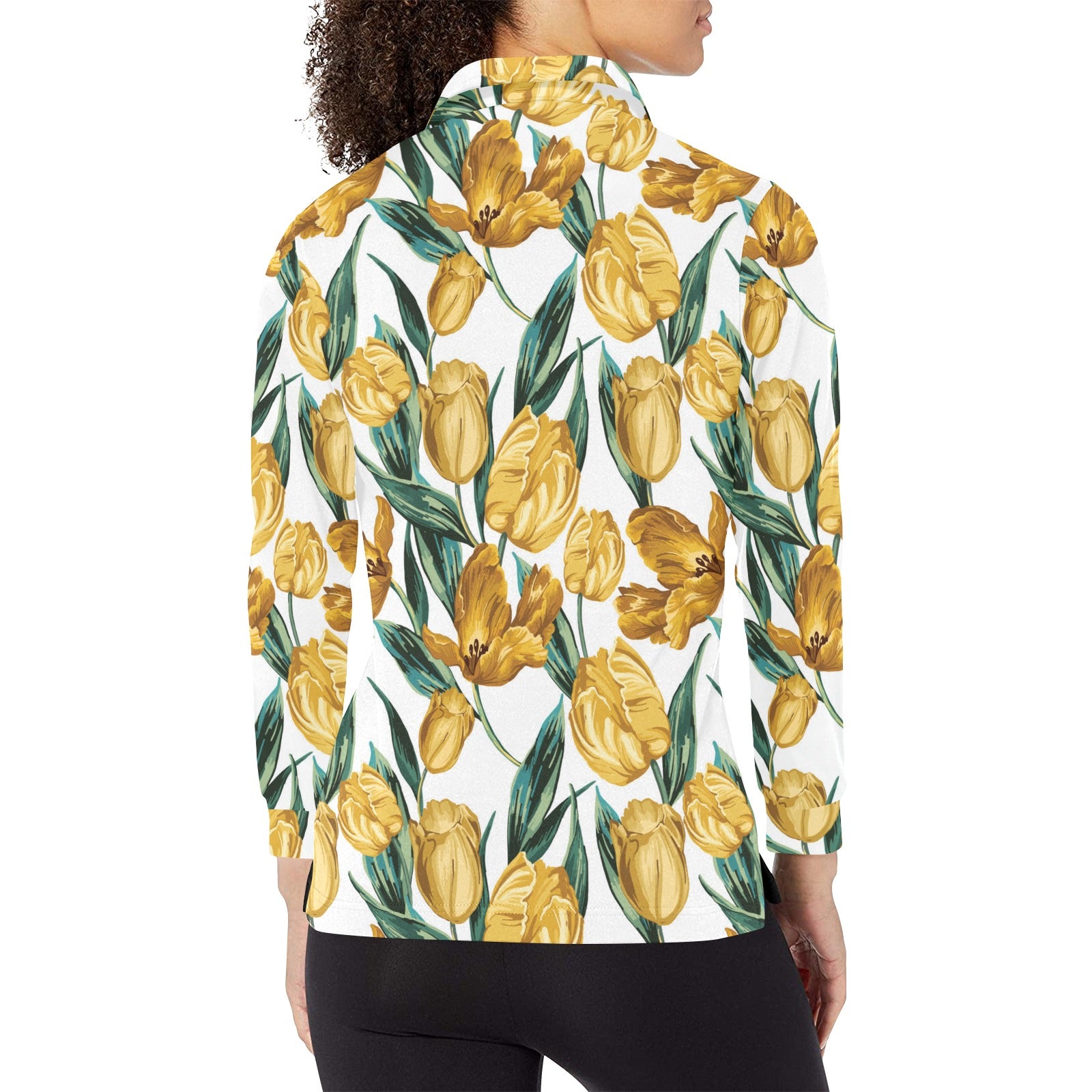 yellow tulips pattern Women's Long Sleeve Polo Shirt