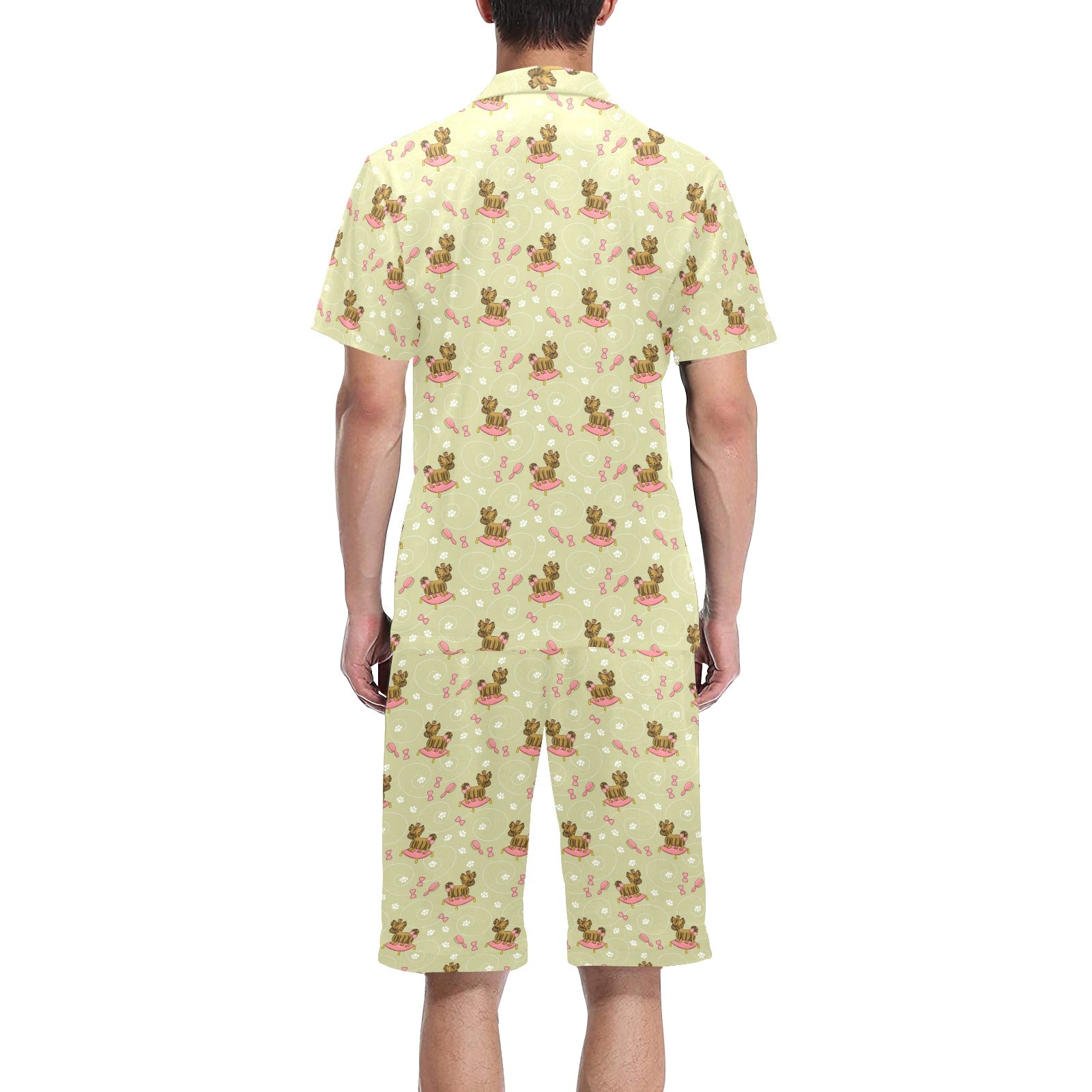 Yorkshire Terrier Pattern Print Design 01 Men's V-Neck Short Pajama Set