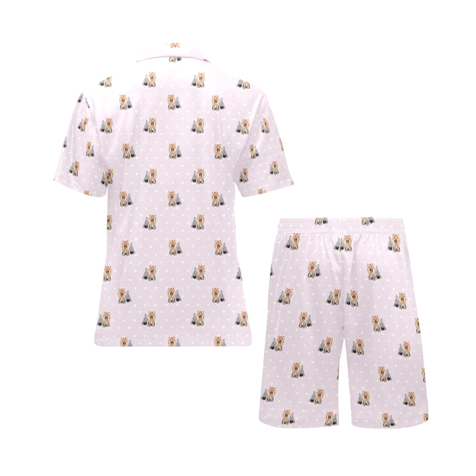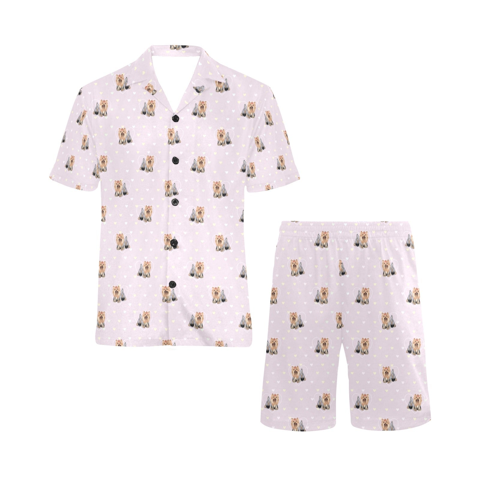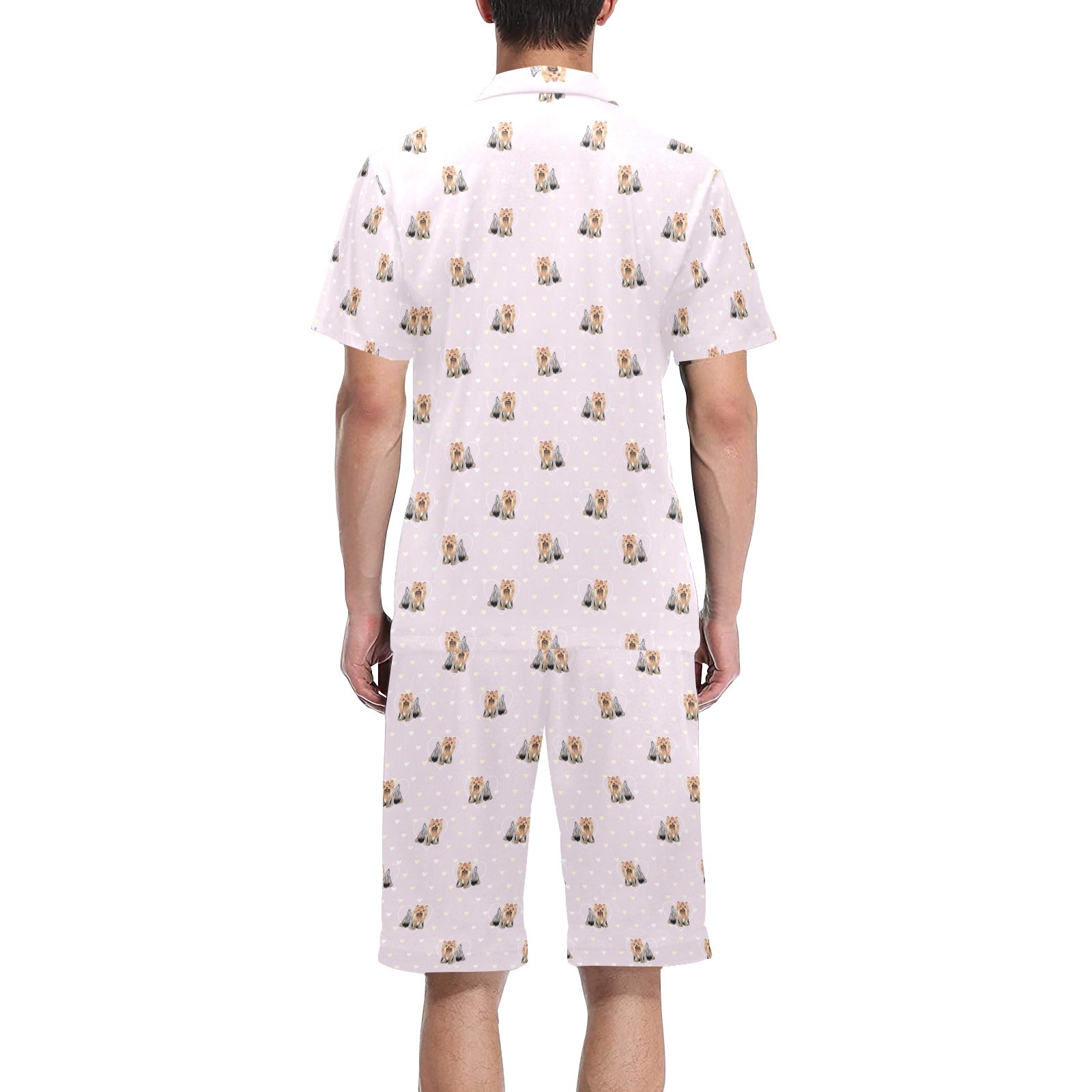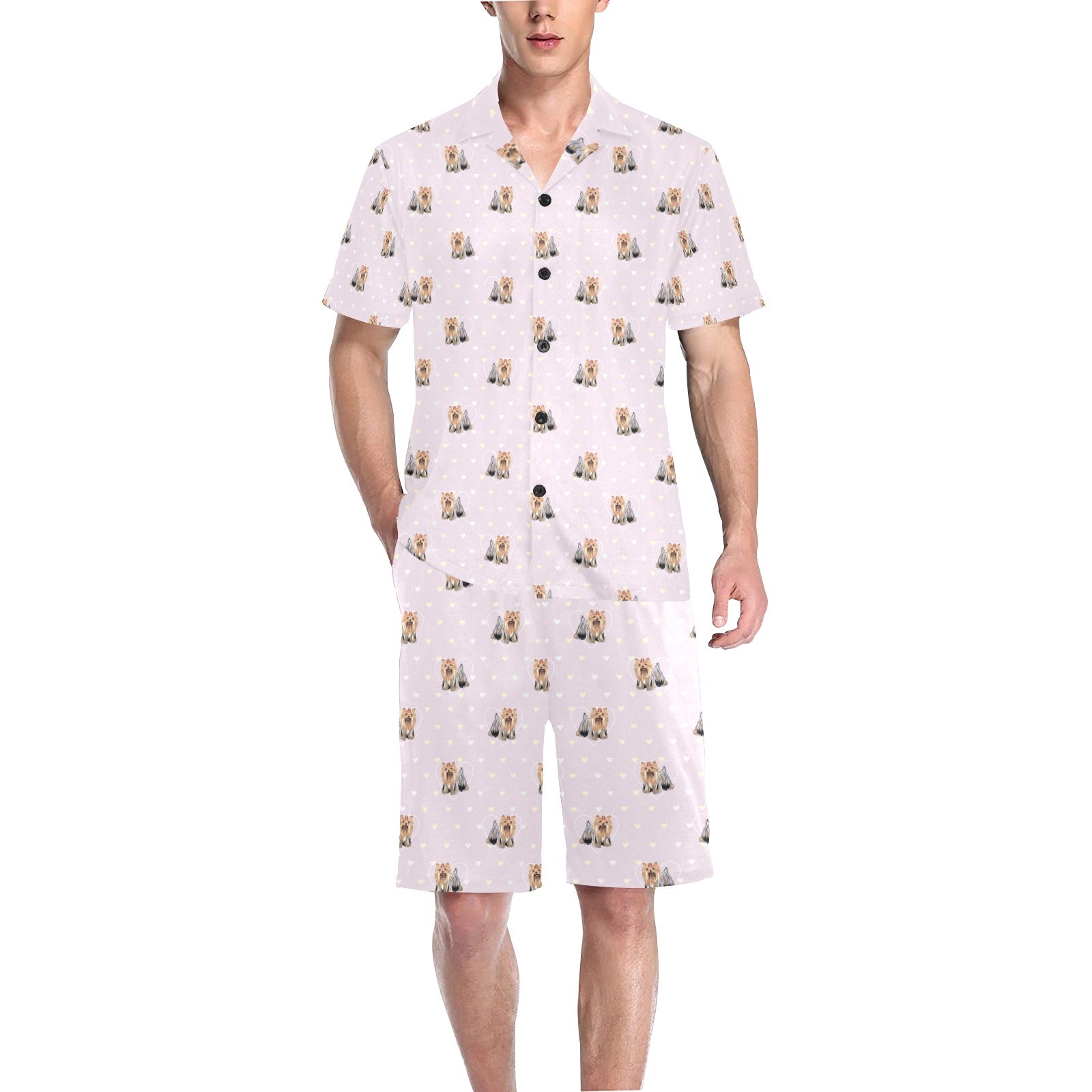 Yorkshire Terrier Pattern Print Design 02 Men's V-Neck Short Pajama Set