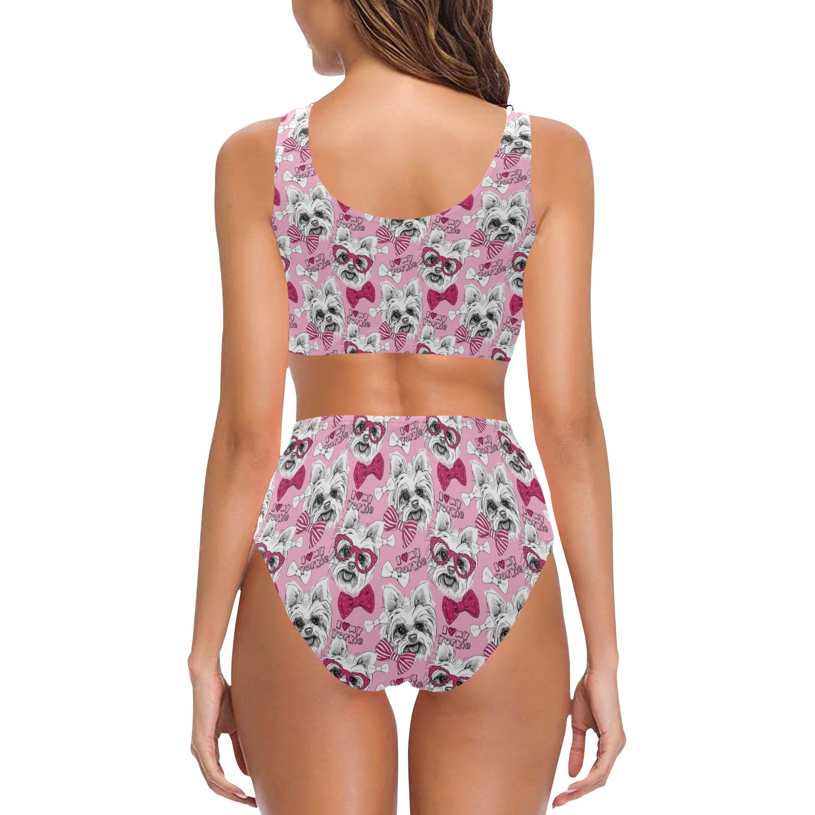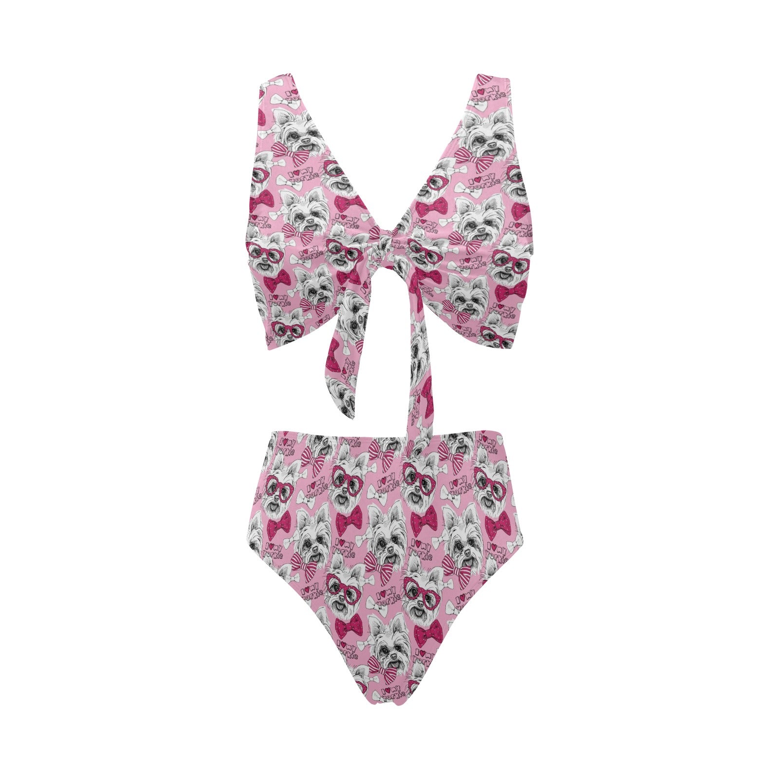 Yorkshire Terrier Pattern Print Design 03 Chest Bowknot High Waisted Bikini Swimsuit