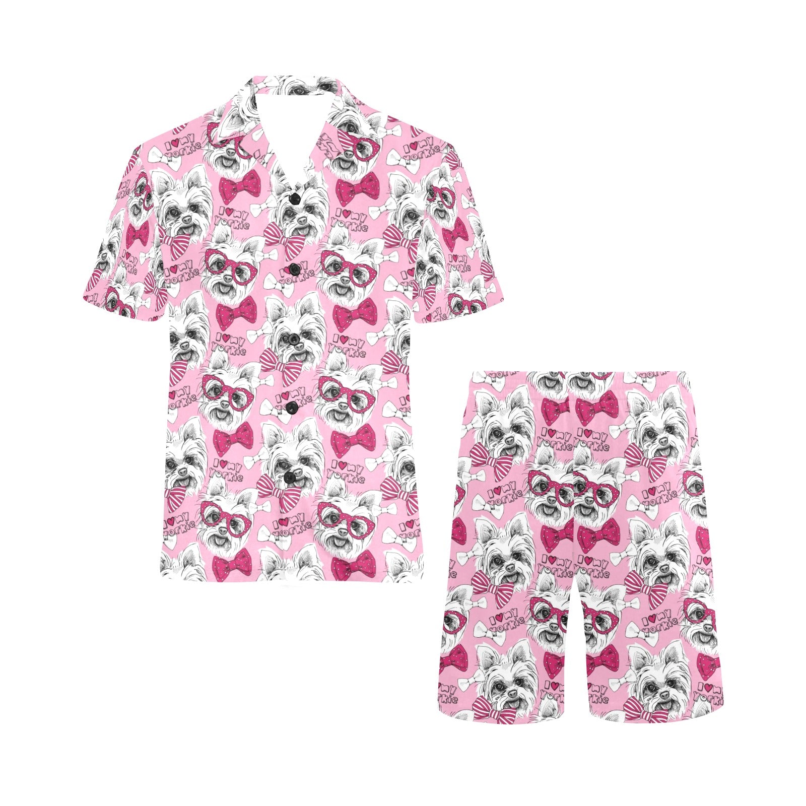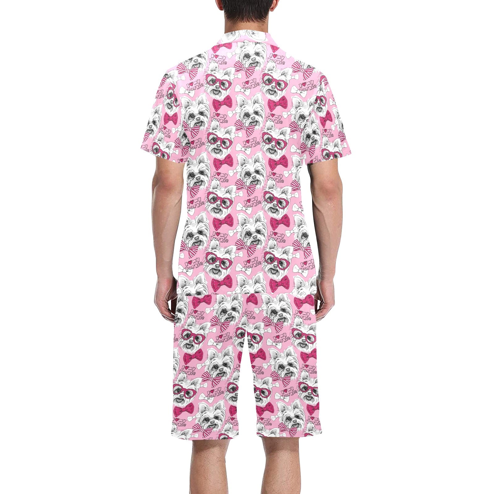 Yorkshire Terrier Pattern Print Design 03 Men's V-Neck Short Pajama Set