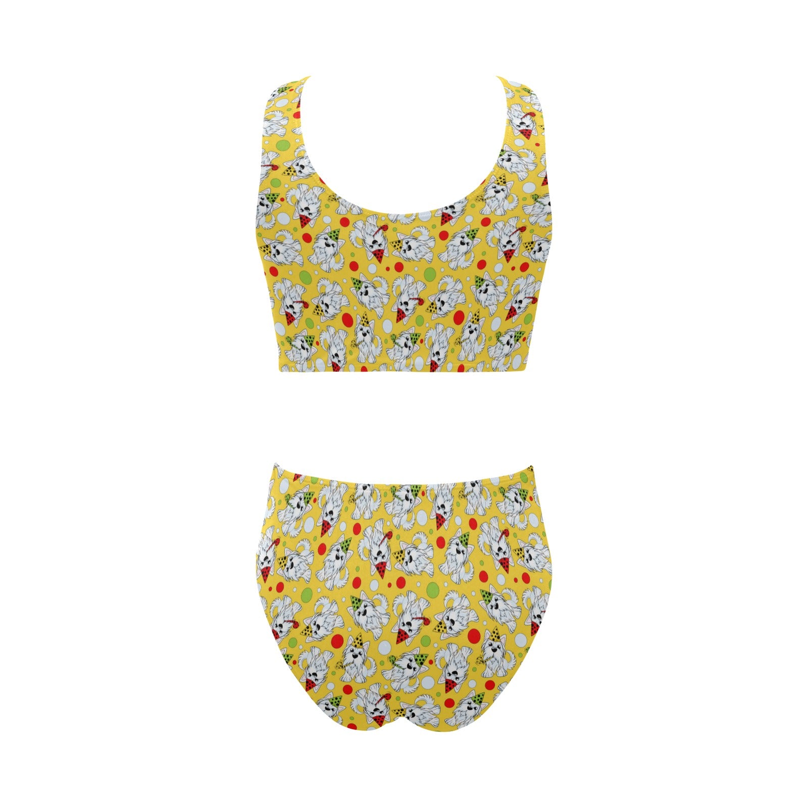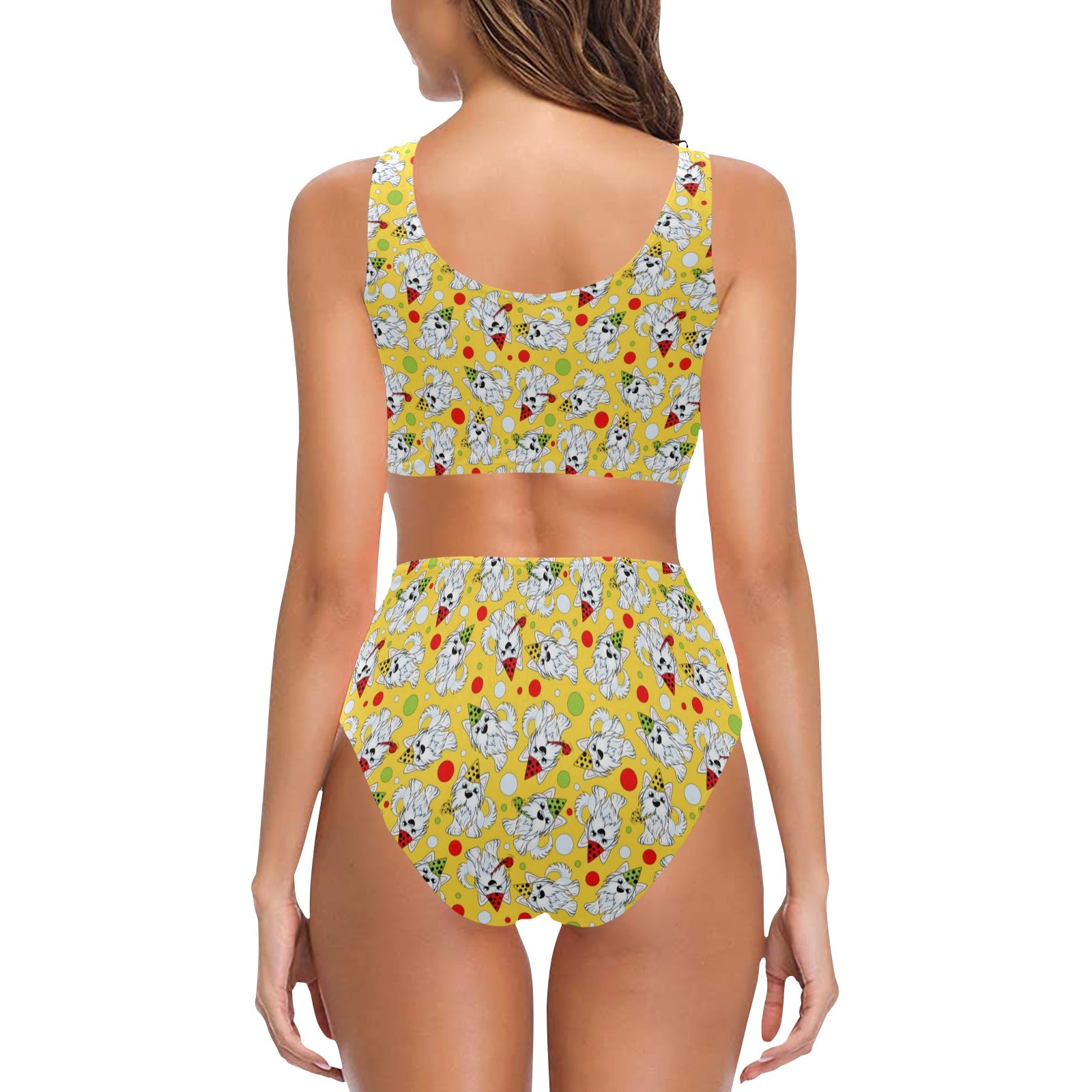Yorkshire Terrier Pattern Print Design 05 Chest Bowknot High Waisted Bikini Swimsuit