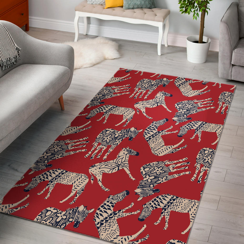 Zebra abstract red background Area Rug is a uniqued design and limited item. It made to order, hand printed, and sewn with love in our factory.