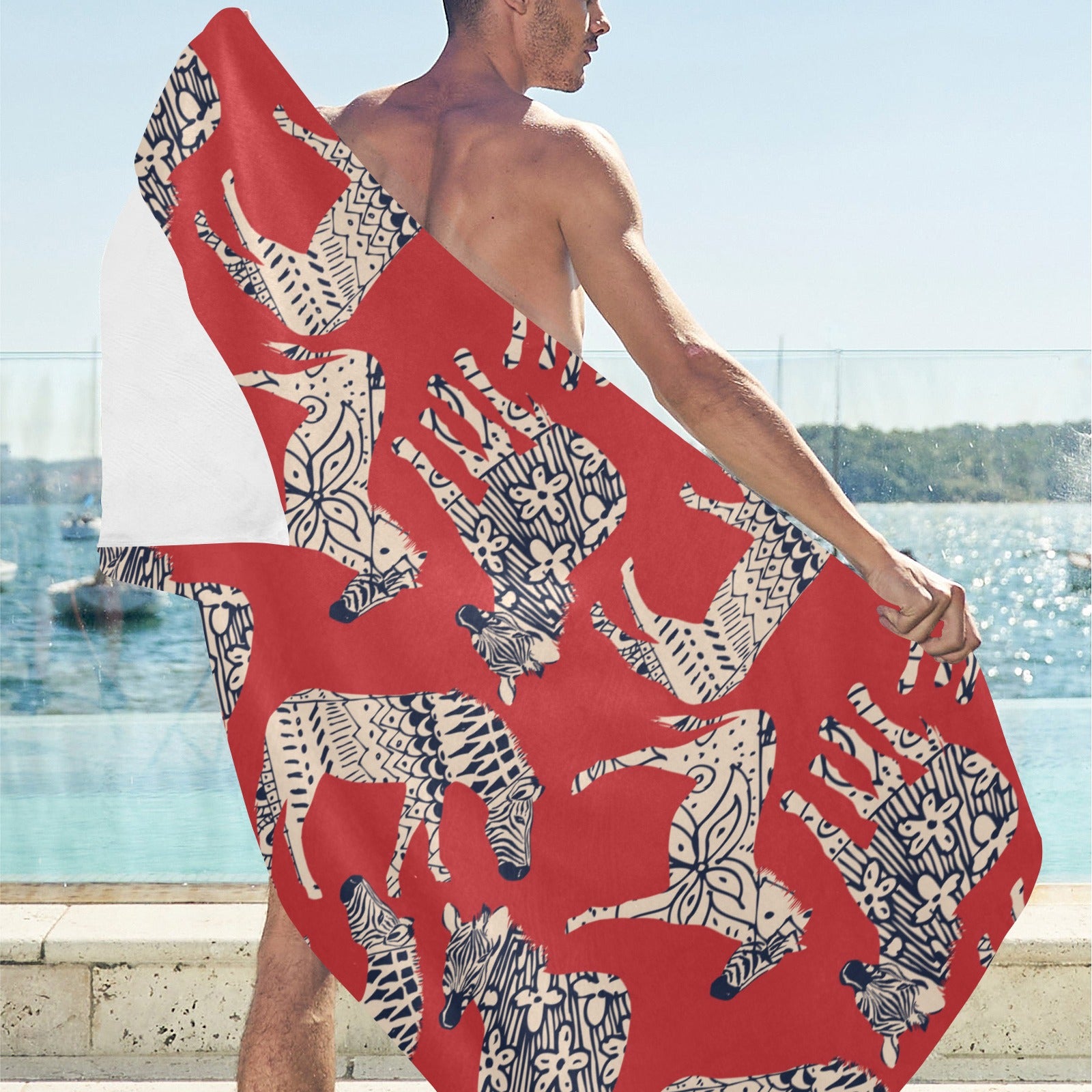 Zebra abstract red background Beach Towel