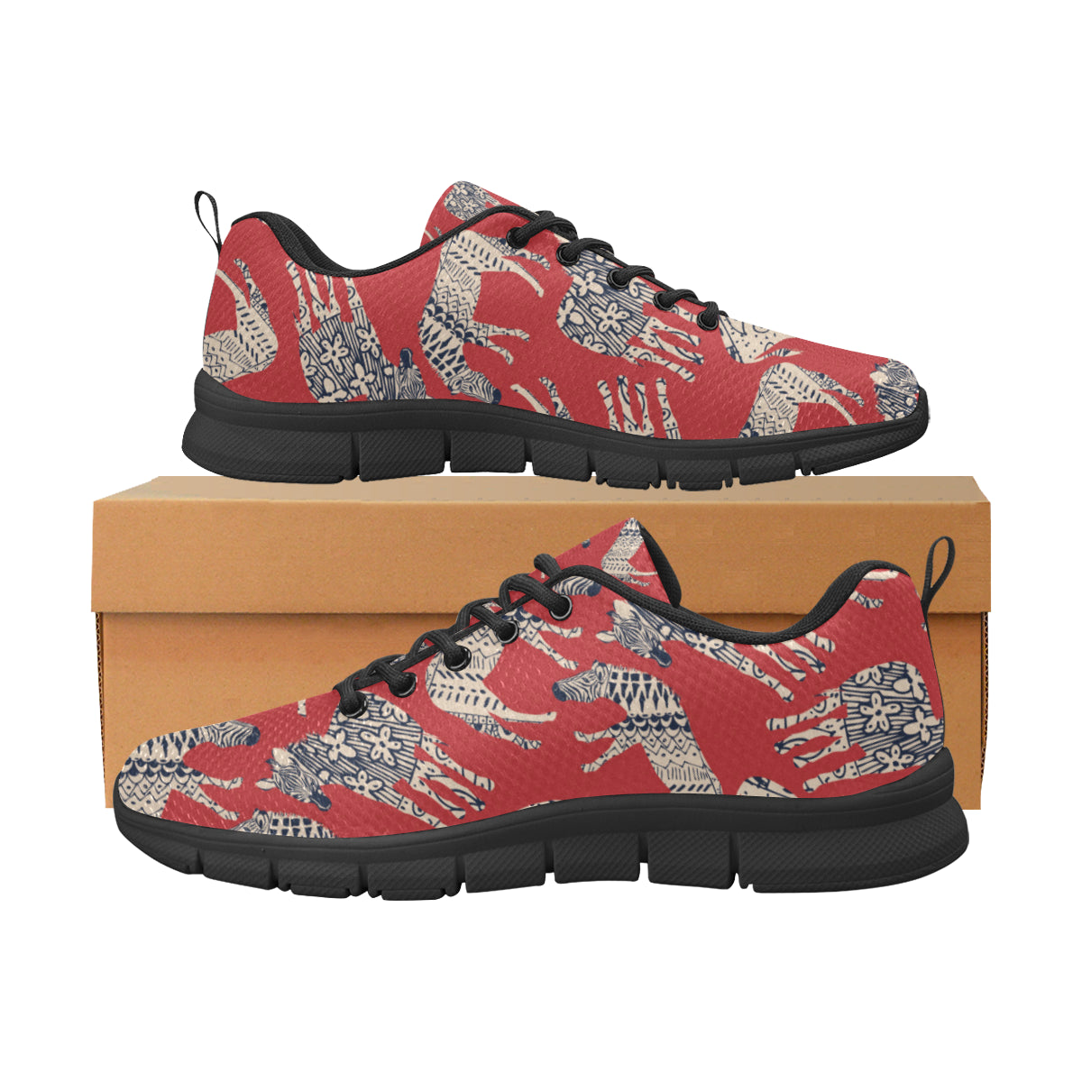 Zebra abstract red background Men's Sneaker Shoes are uniqued design and limited item. It made to order, hand printed, and sewn with love in our factory.