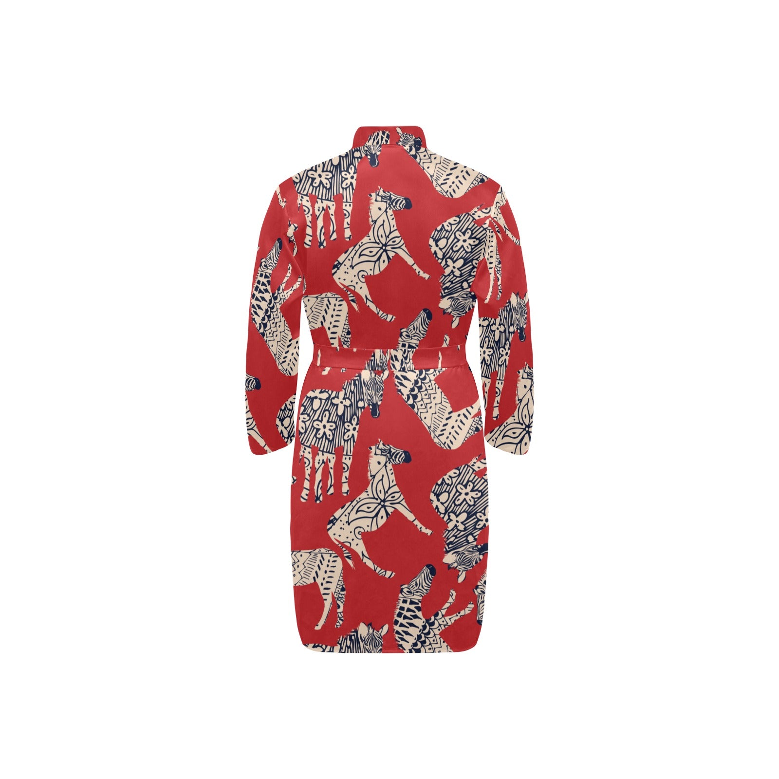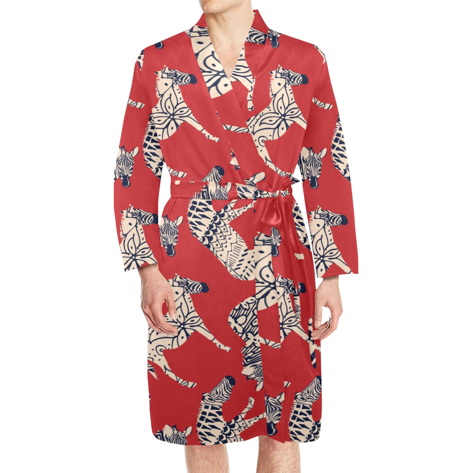 Zebra abstract red background Men's Long Sleeve Belted Night Robe