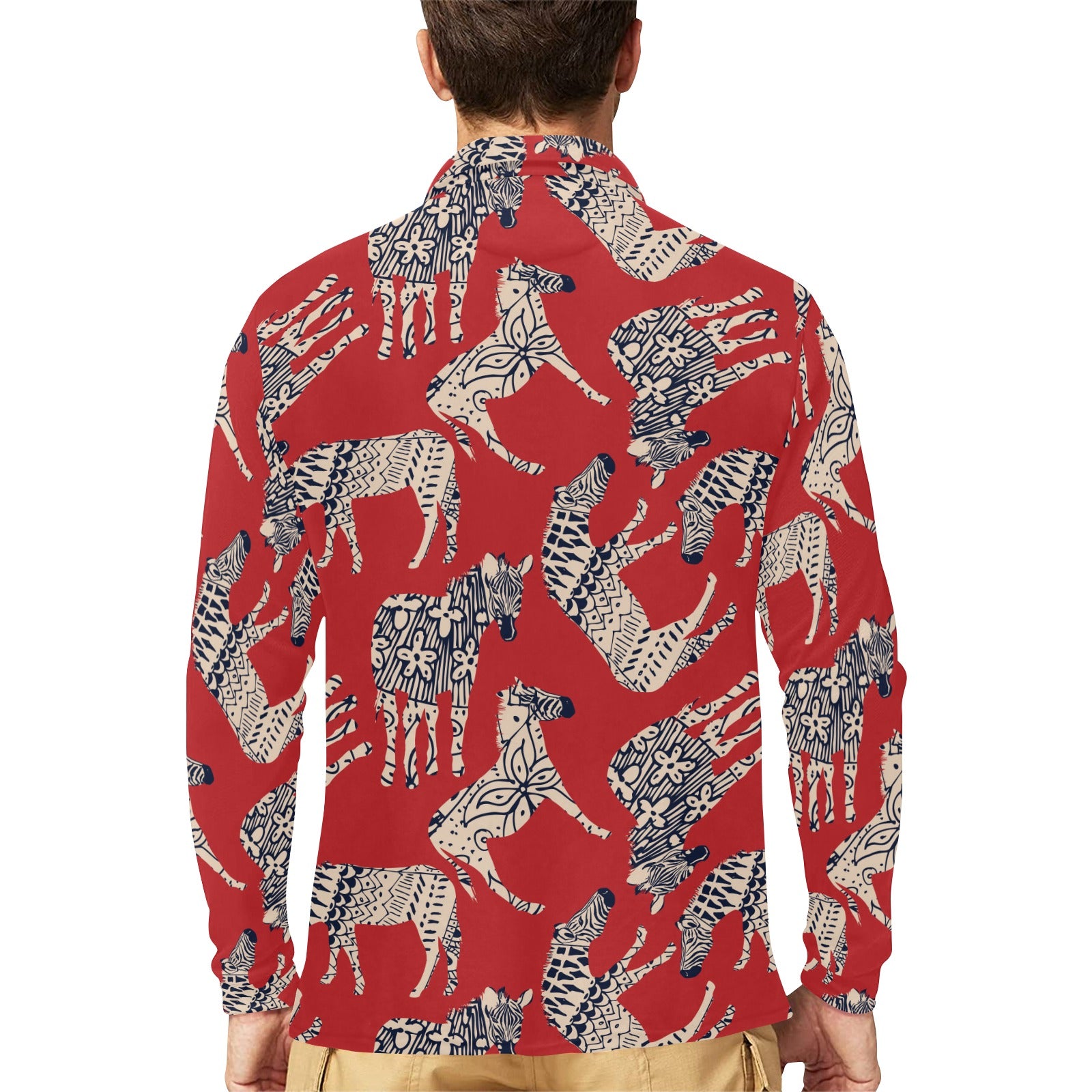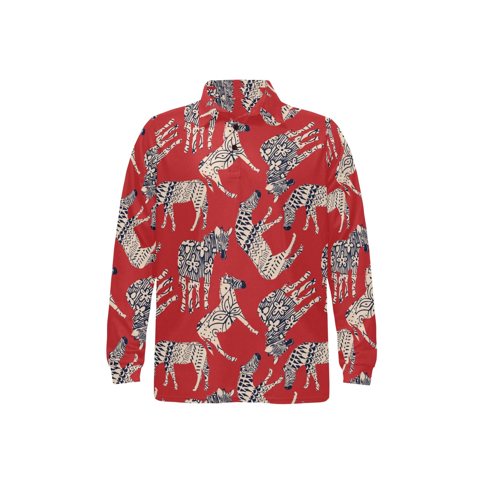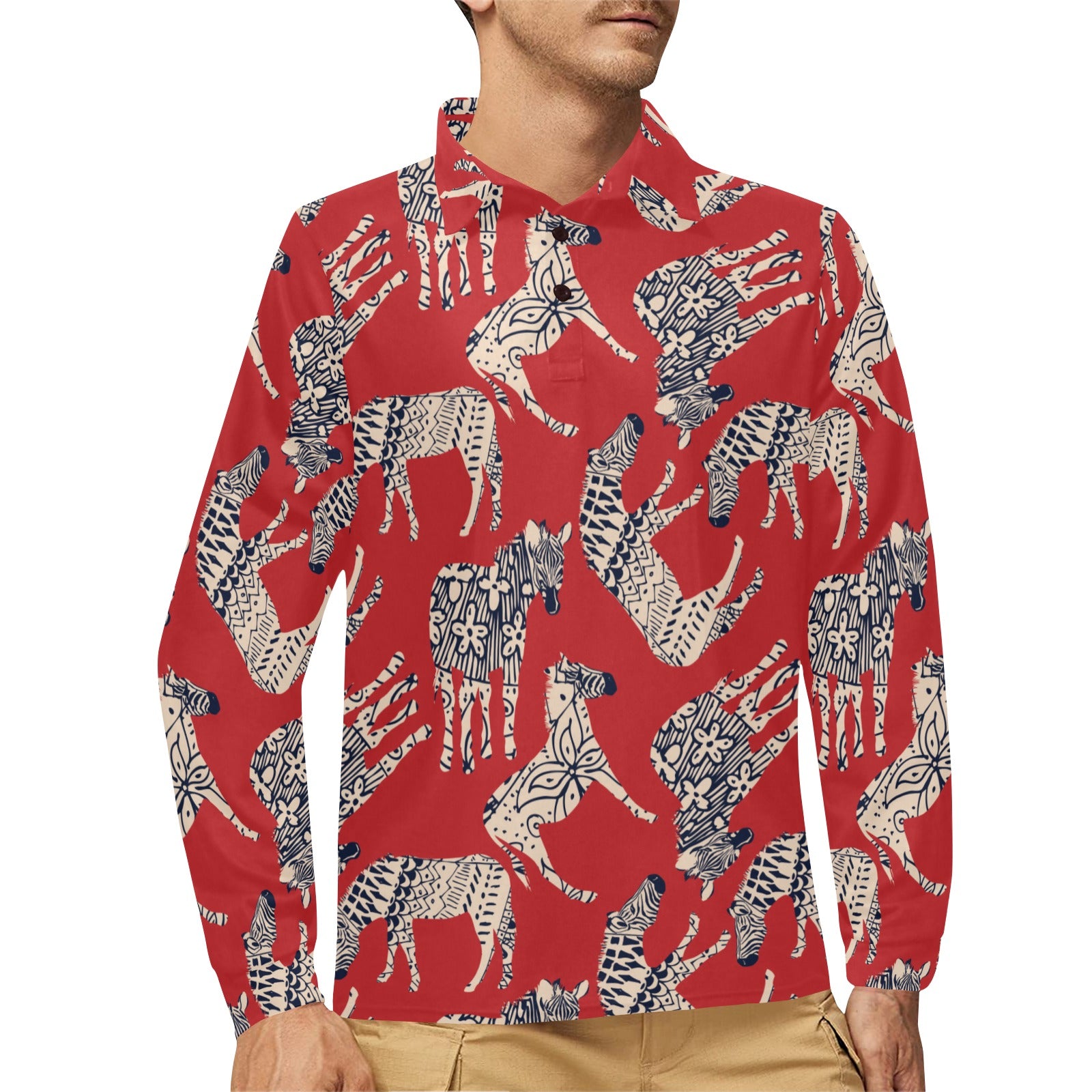 Zebra abstract red background Men's Long Sleeve Polo Shirt