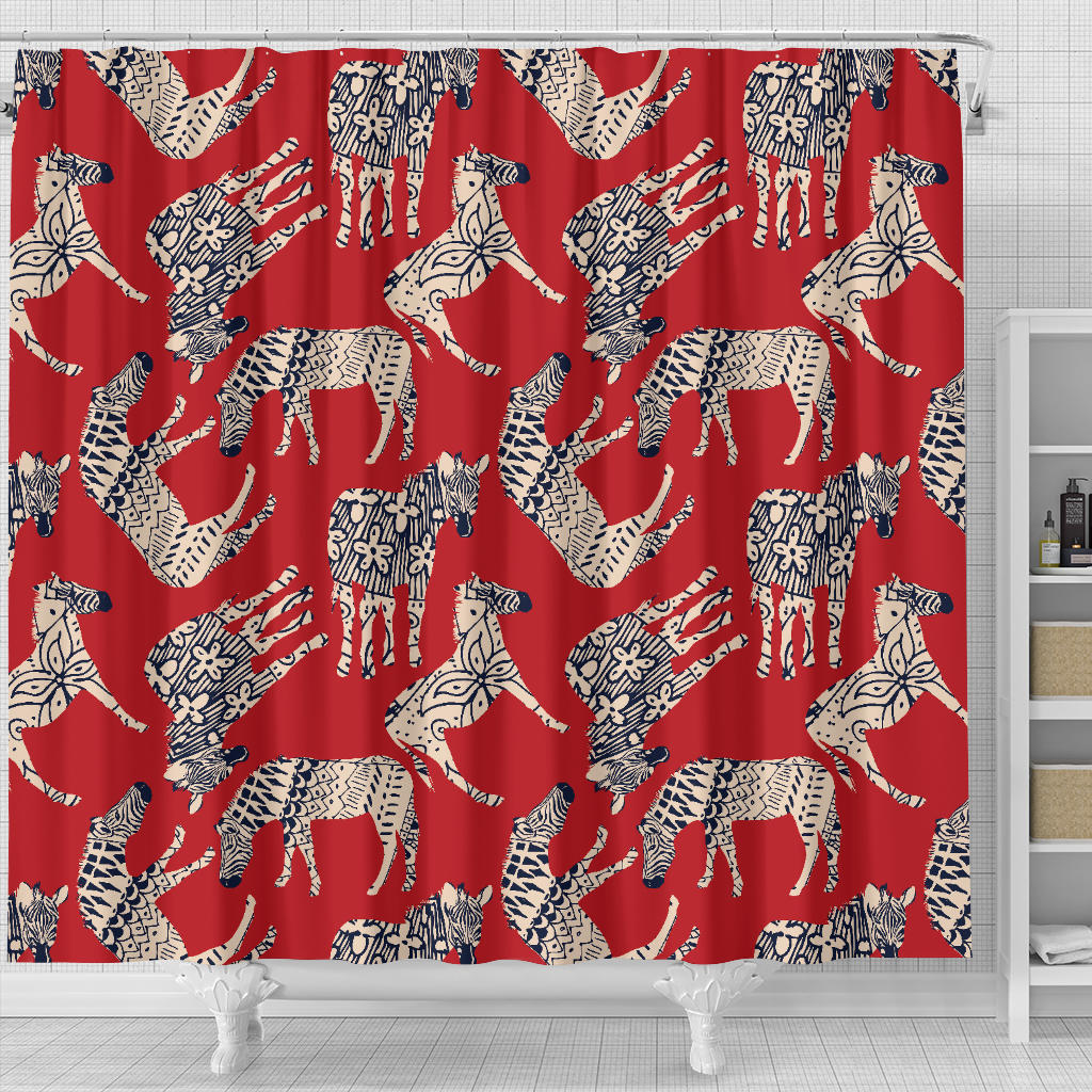 Zebra Abstract Red Background Shower Curtain Fulfilled In US