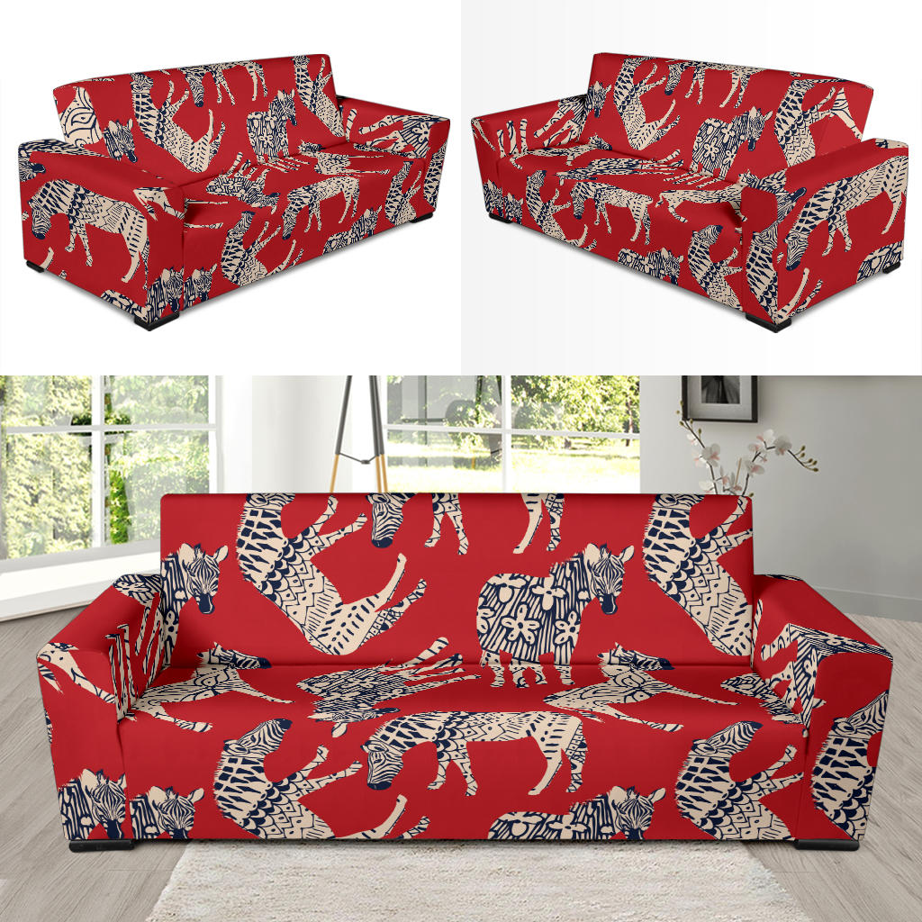 Zebra Abstract Red Background Sofa Slipcover