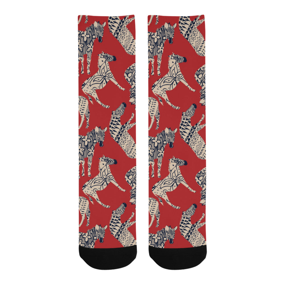 Zebra abstract red background Crew Socks are uniqued design and limited item. It made to order, hand printed, and sewn with love in our factory.