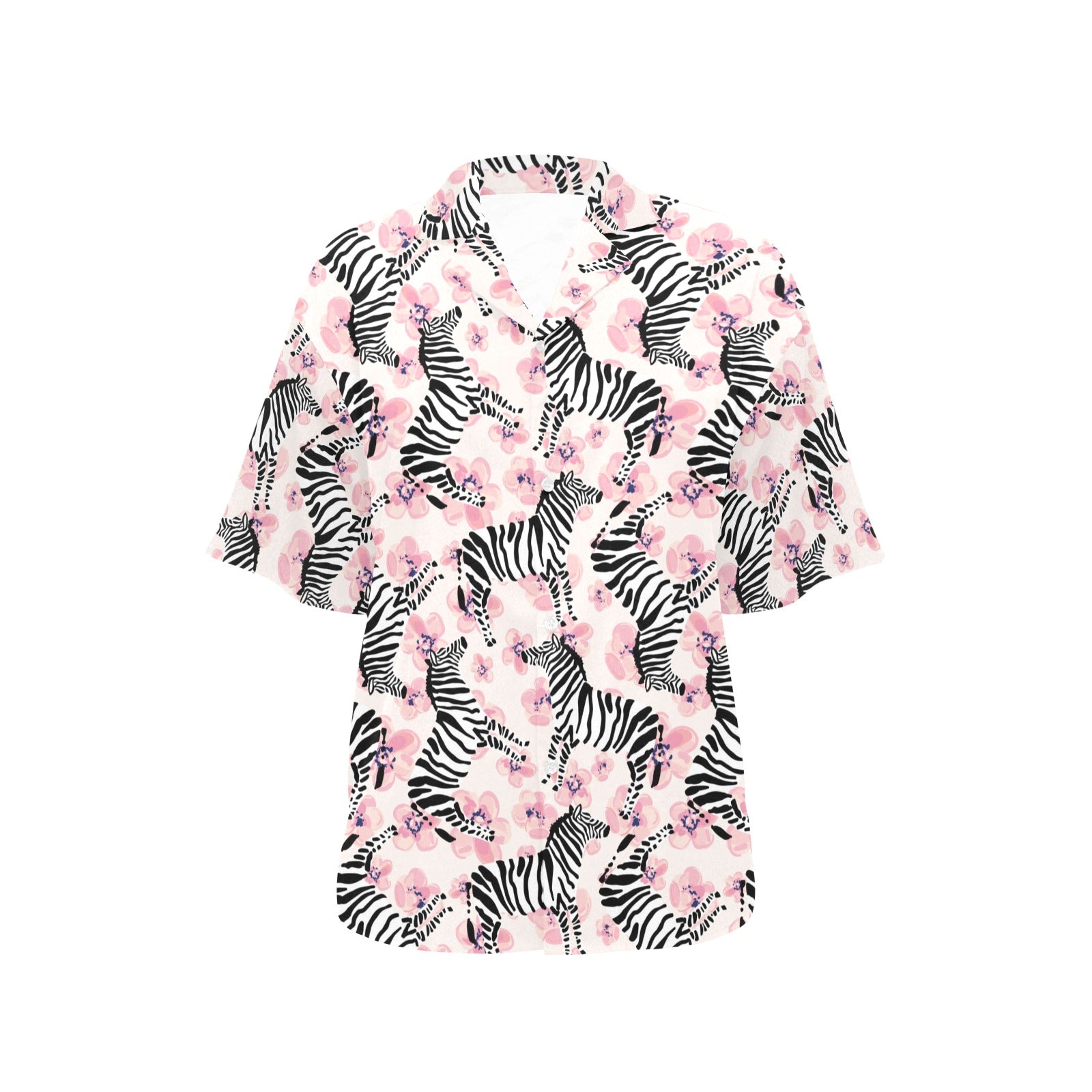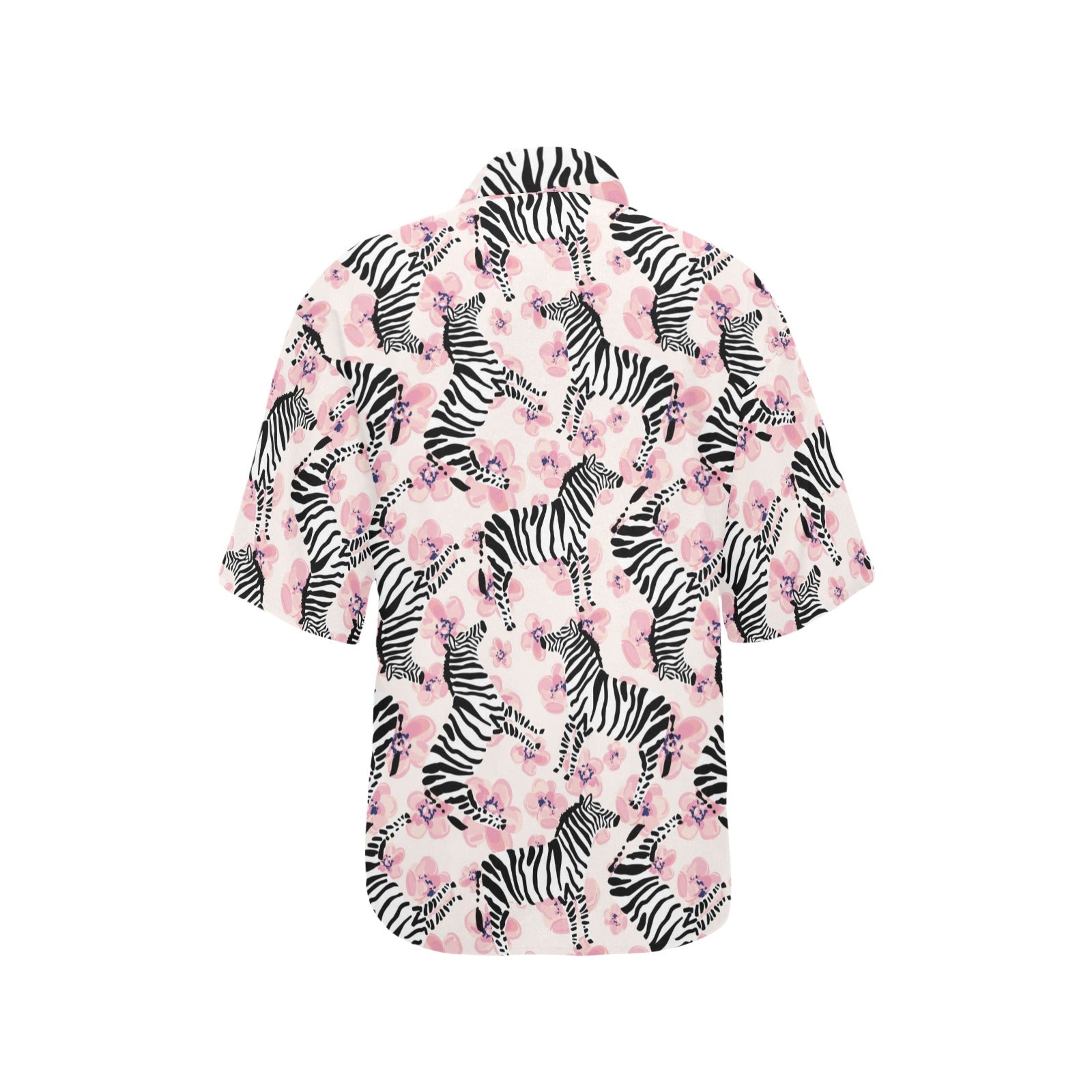 Zebra pink flower background Women's All Over Print Hawaiian Shirt
