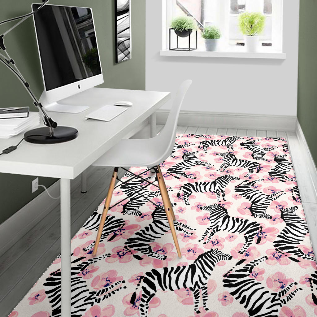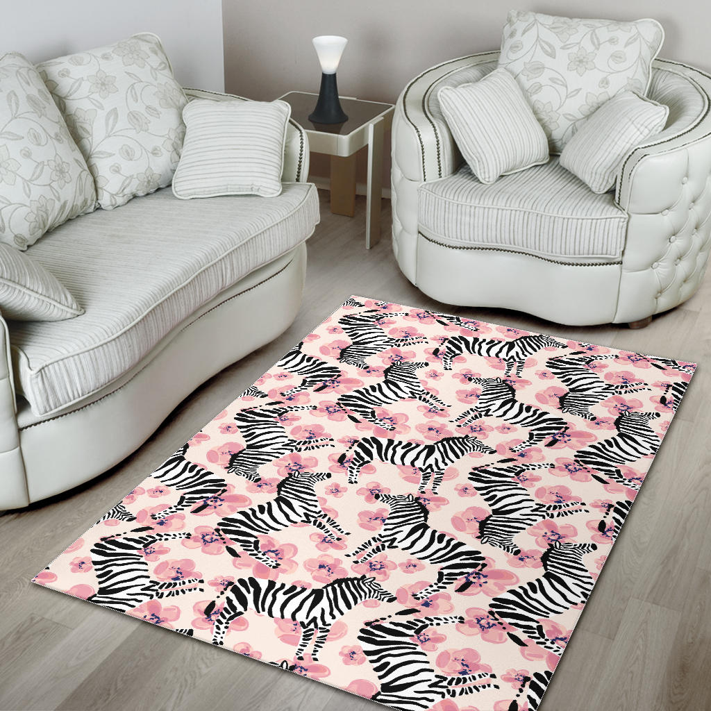 Zebra pink flower background Area Rug is a uniqued design and limited item. It made to order, hand printed, and sewn with love in our factory.