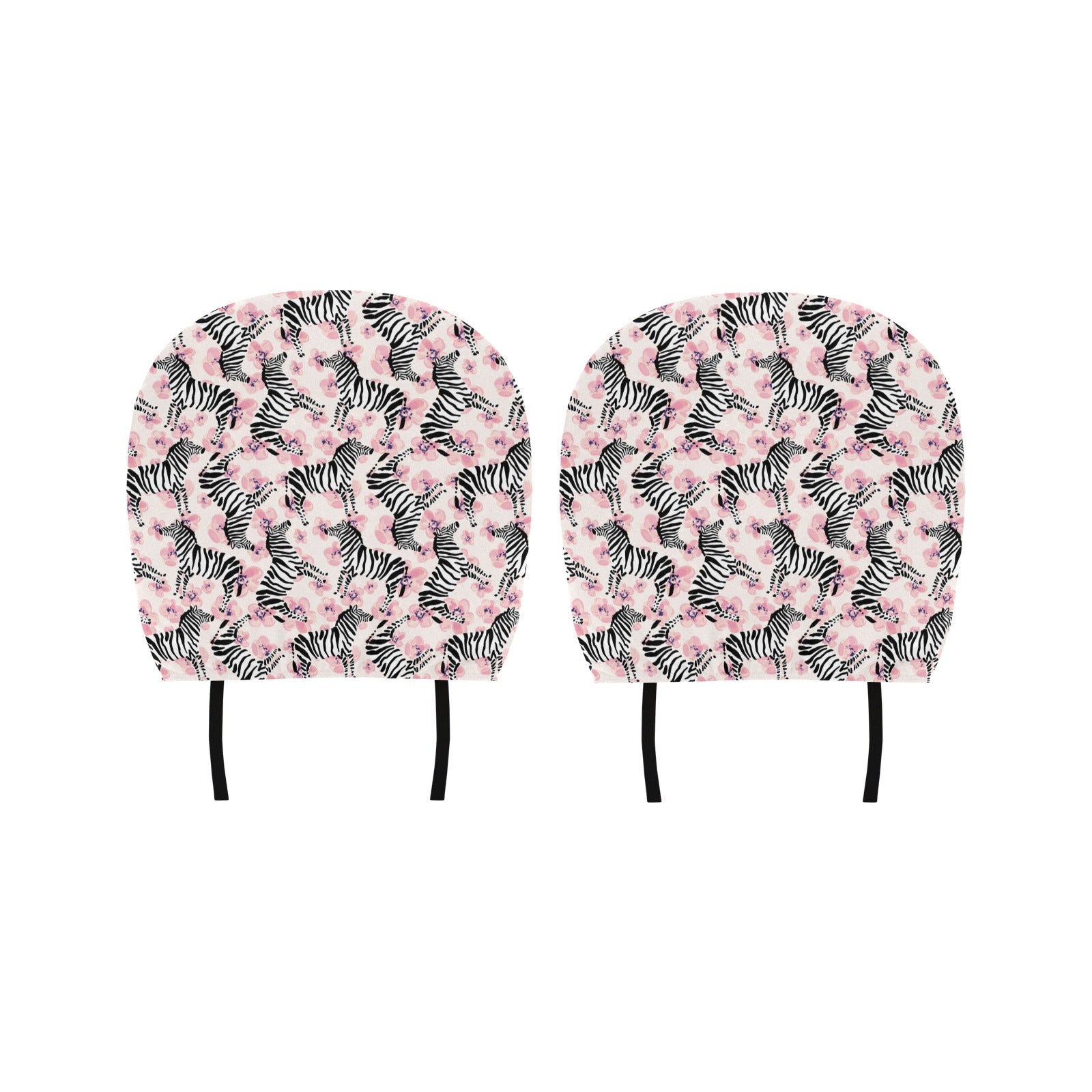 Zebra pink flower background Car Headrest Cover
