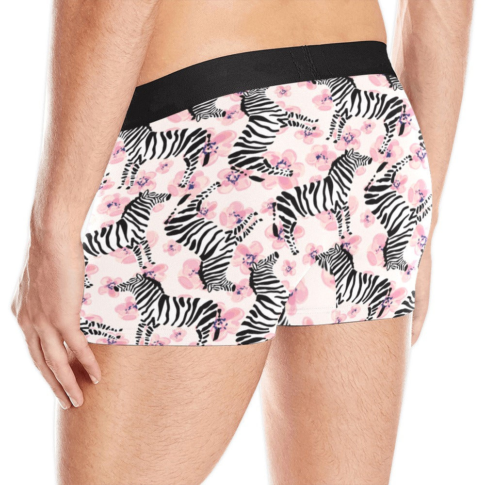 Zebra pink flower background Men's All Over Print Boxer Briefs Men's Underwear