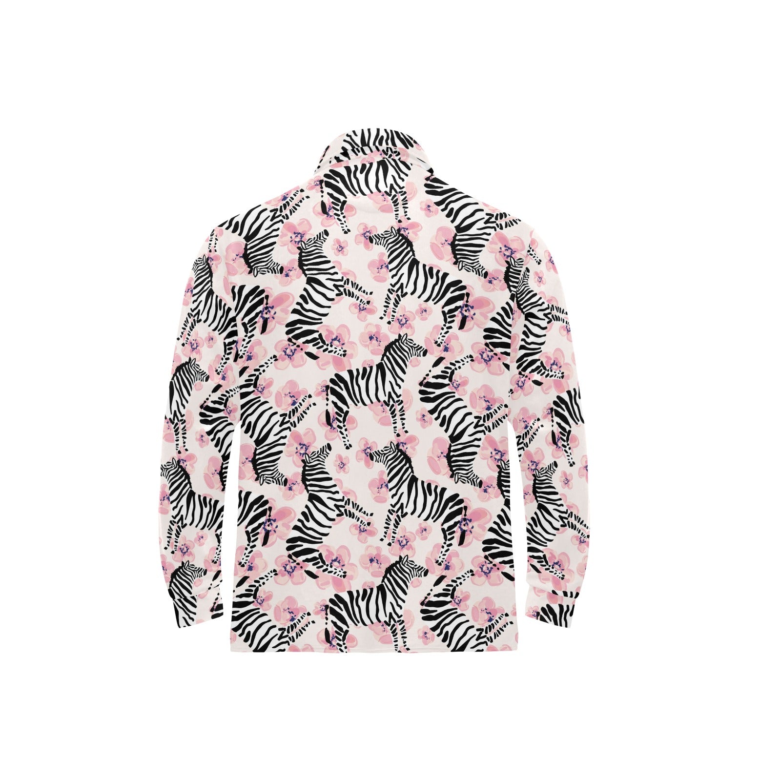 Zebra pink flower background Men's Long Sleeve Polo Shirt