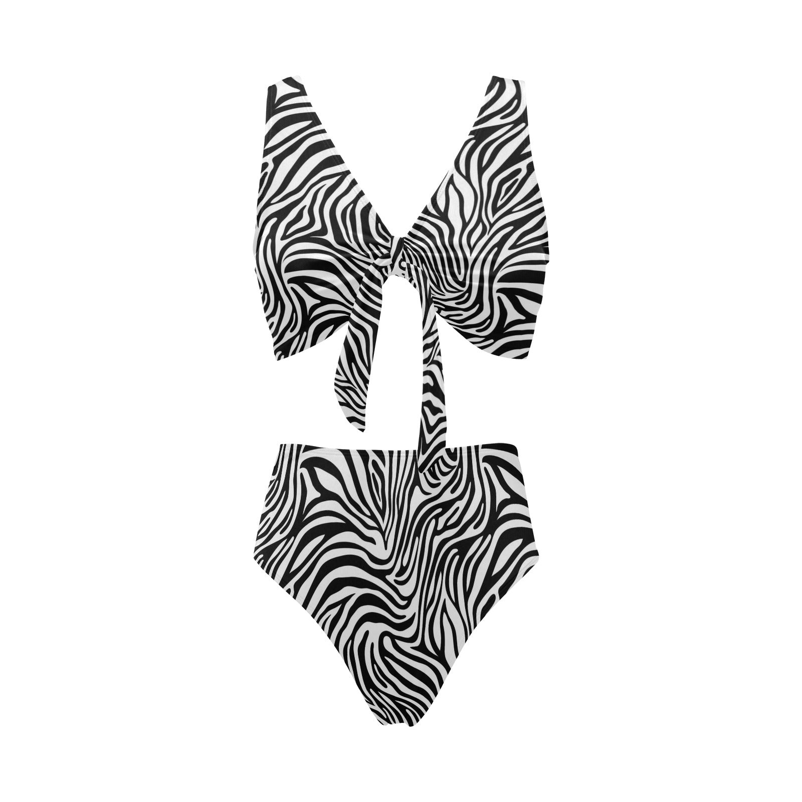Zebra skin pattern Chest Bowknot High Waisted Bikini Swimsuit