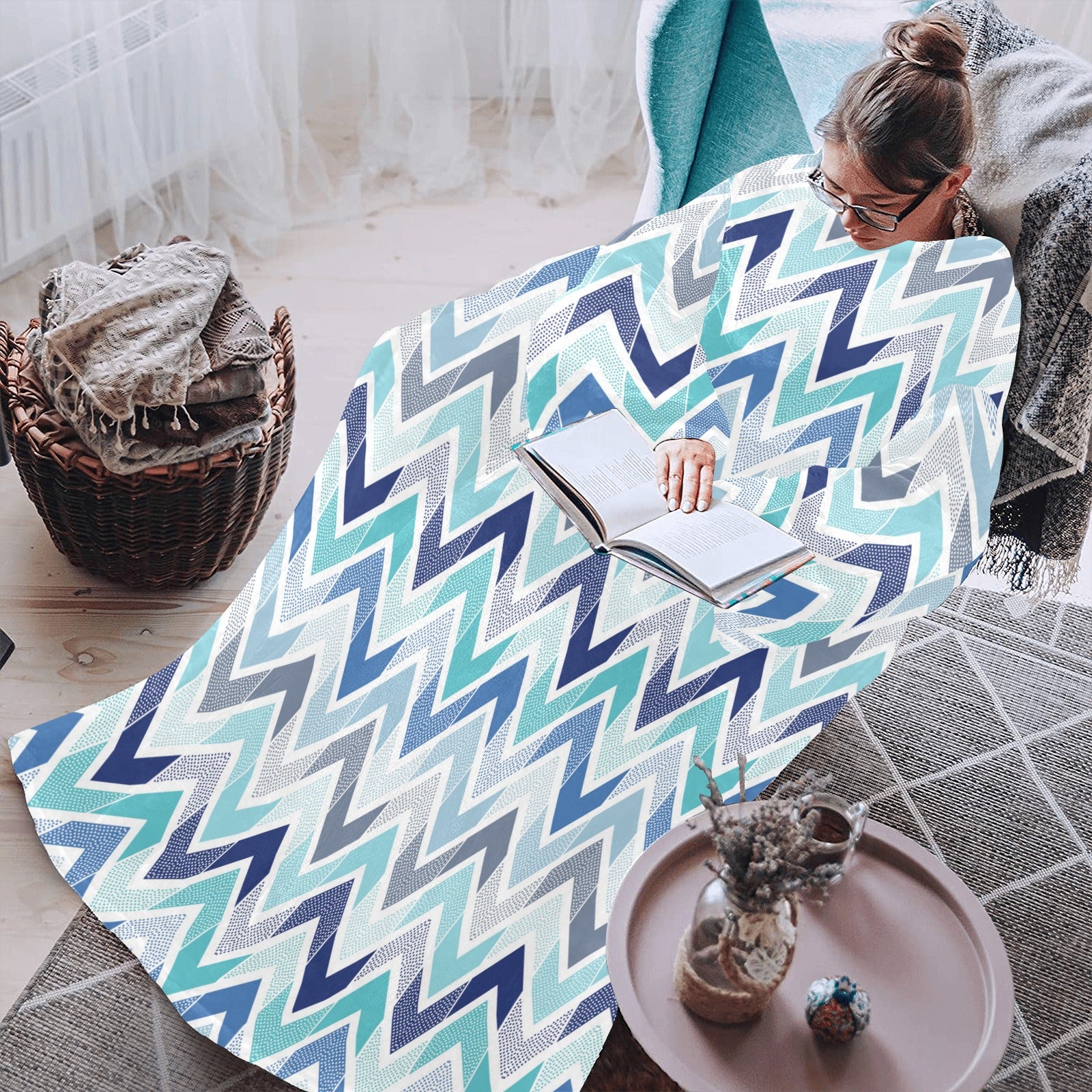 zigzag chevron blue pattern Blanket Robe with Sleeves