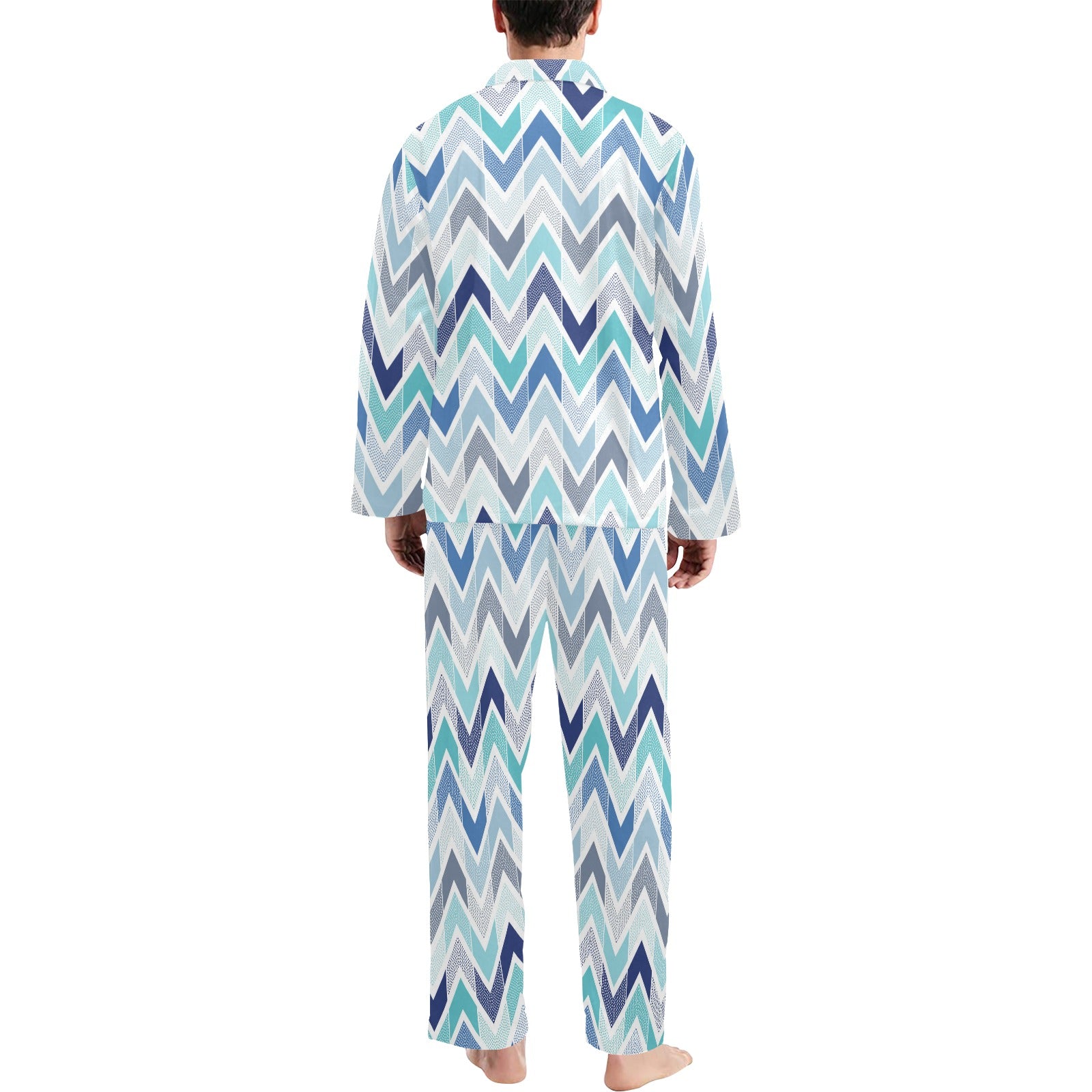 zigzag chevron blue pattern Men's Long Pajama Set